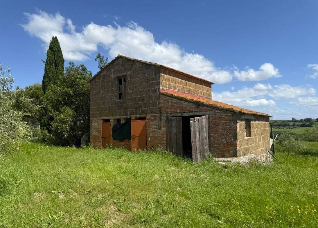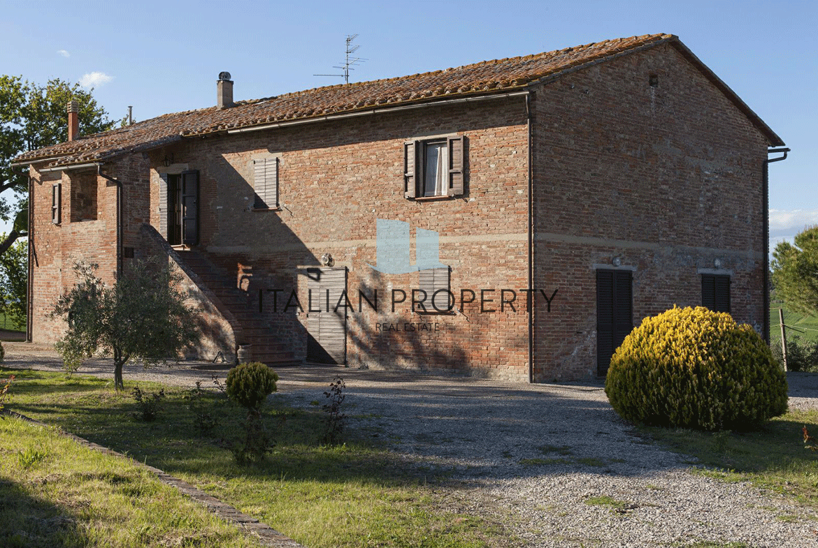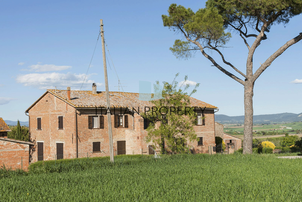 Umbrische Bauernhaus aus rotem Backstein in Castiglione del Lago von 350 qm auf zwei Ebenen, mit zwei Nebengebäuden zu restaurieren und einem geschlossenen Garten von etwa 3000 qm mit Olivenbäumen.
