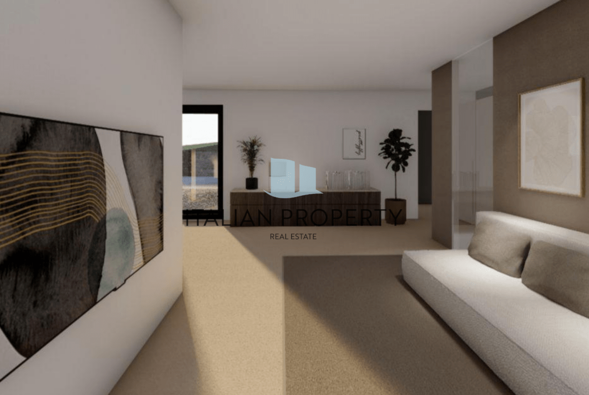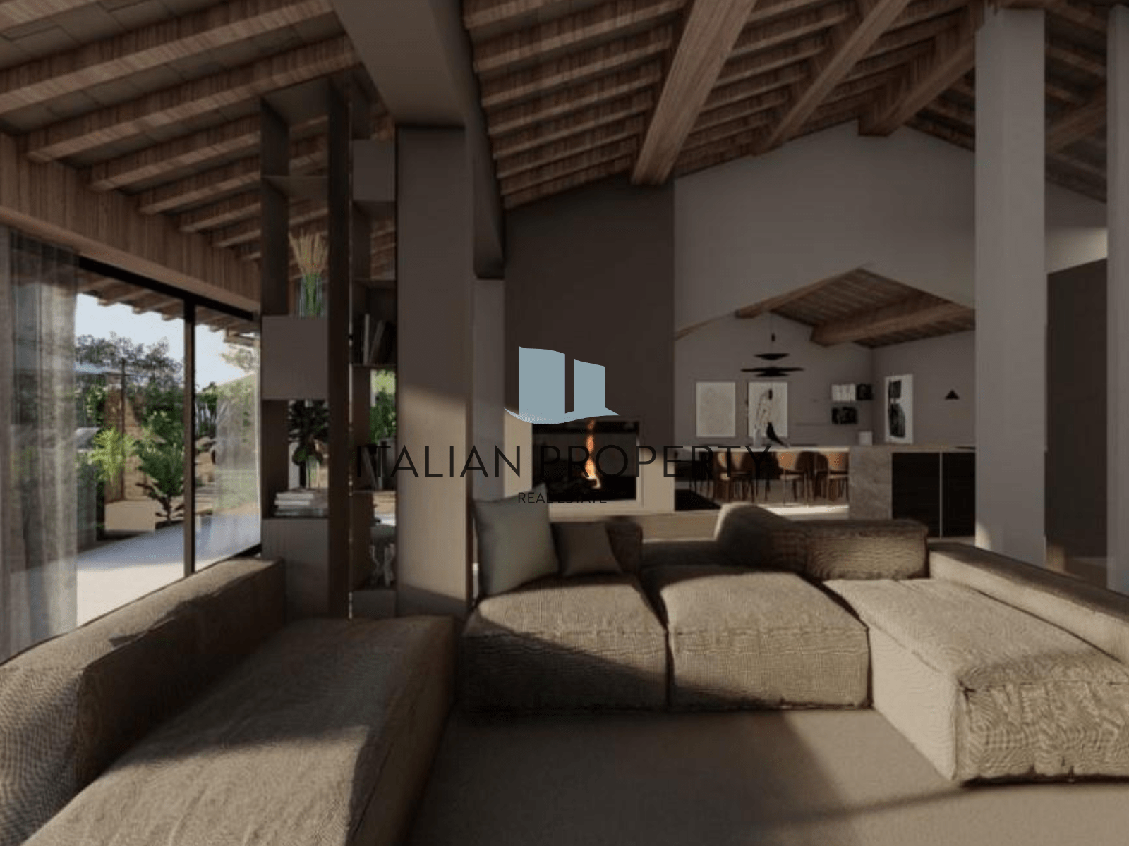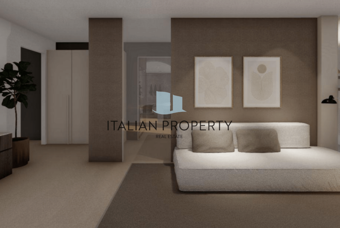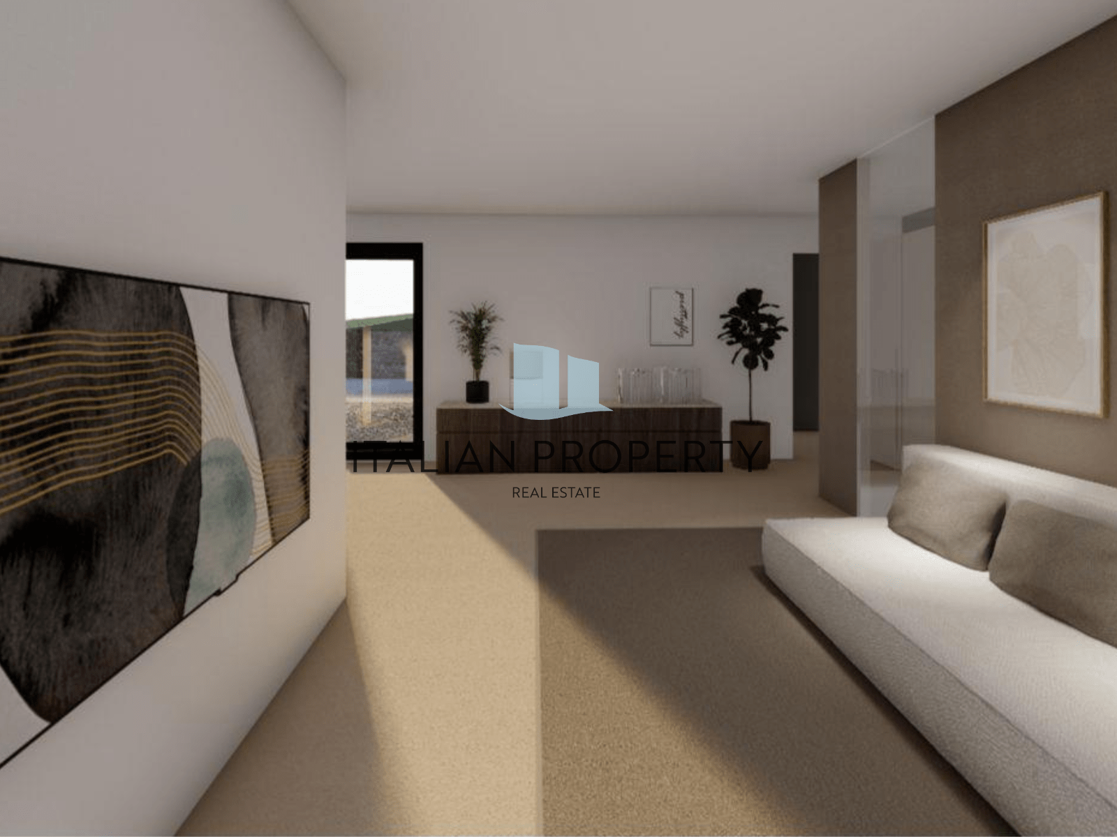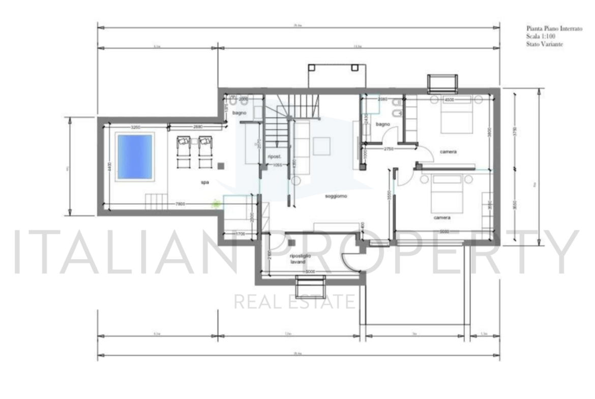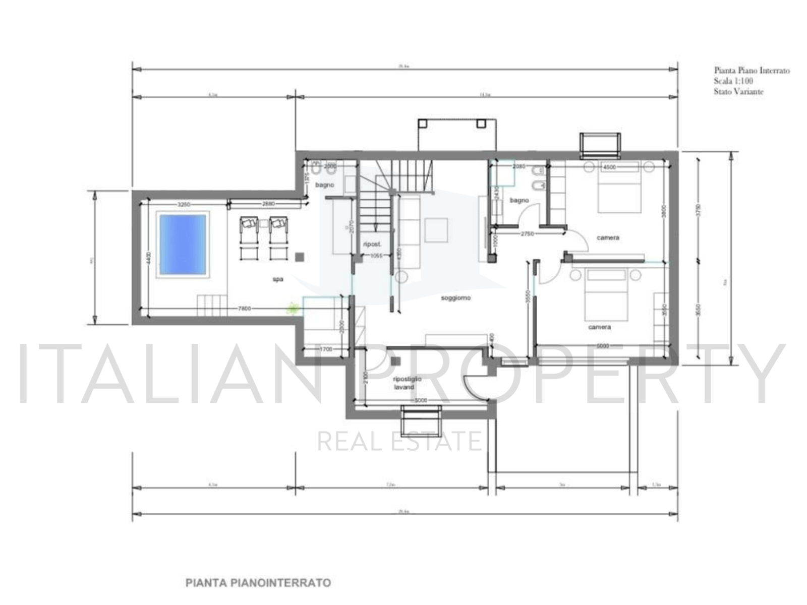 Die Villa befindet sich auf der Semi-Interrato-Etage. Wir finden den unabhängigen Zugang, ein großes Wohnzimmer, ein großes Schlafzimmer mit begehbarem Kleiderschrank, den Spa-Bereich mit beheiztem Innenpool, 2 Badezimmer (eines im Zimmer), die Waschküche und den Abstellraum.