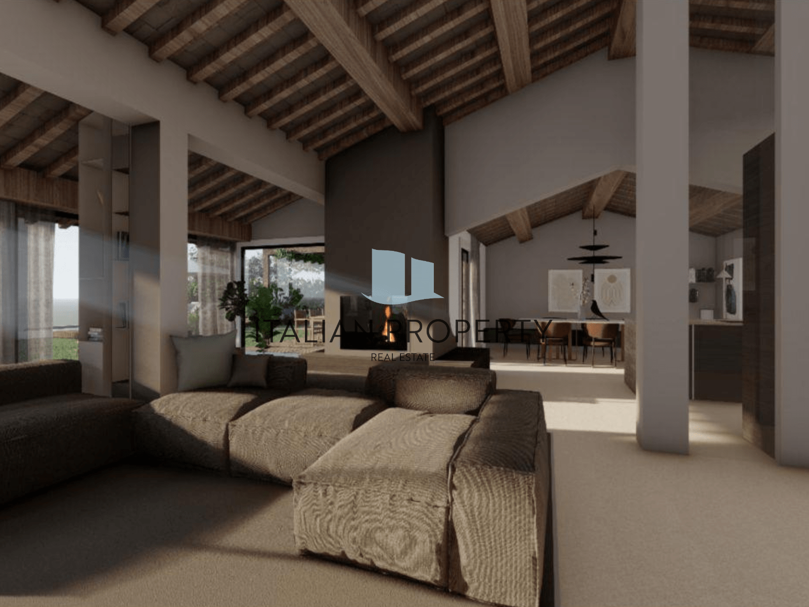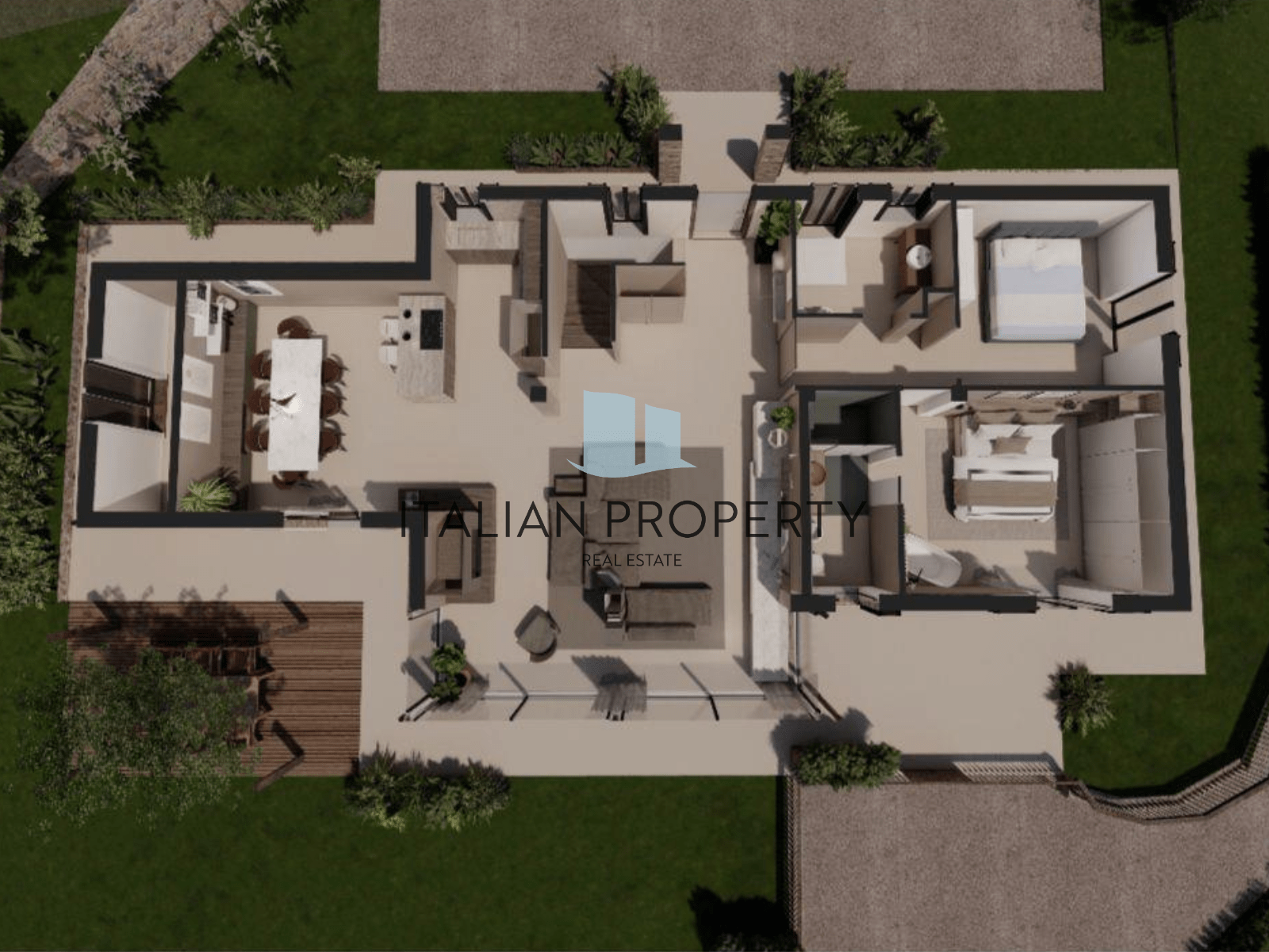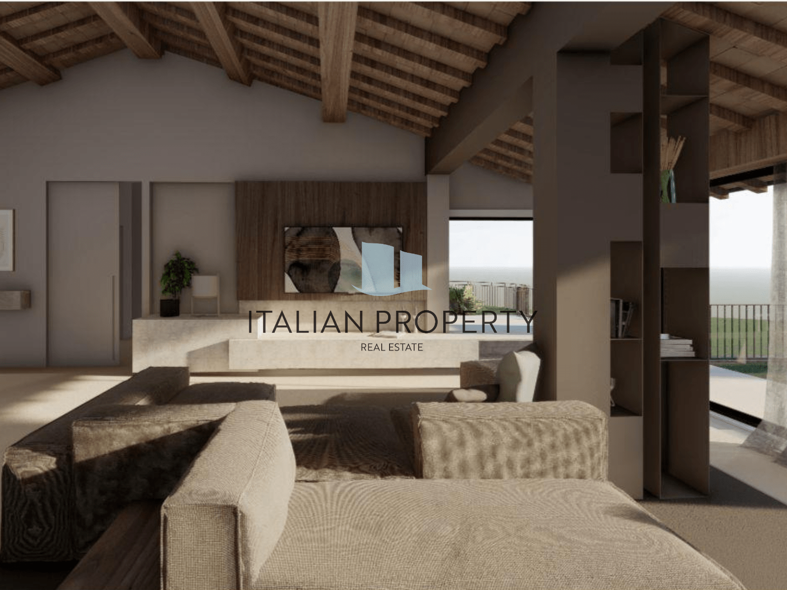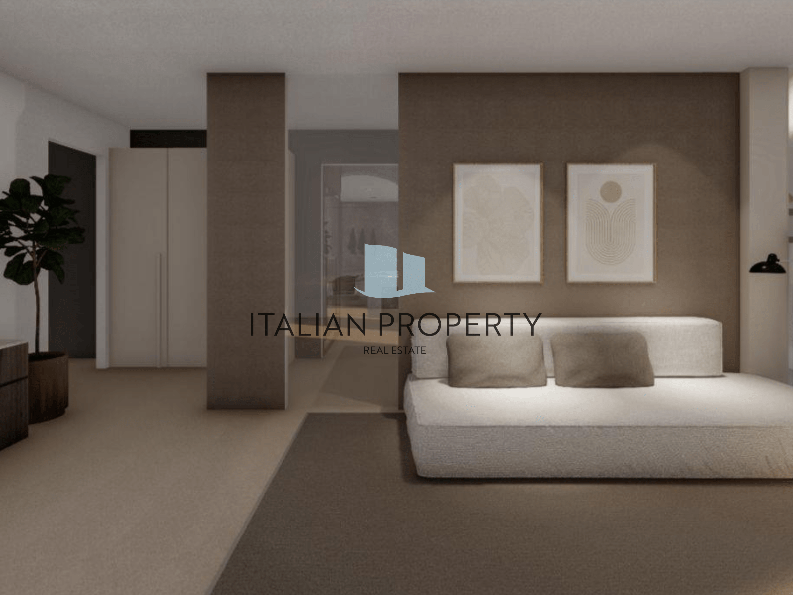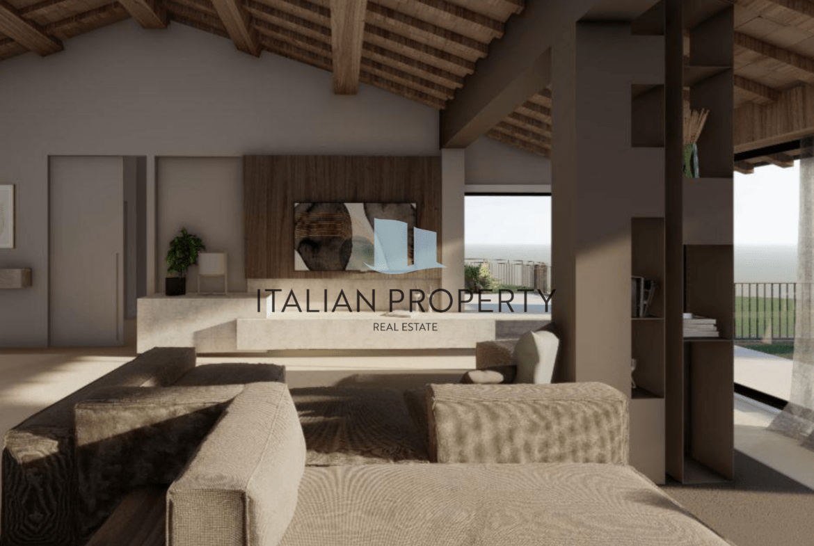 Die Villa befindet sich auf der Semi-Interrato-Etage. Wir finden den unabhängigen Zugang, ein großes Wohnzimmer, ein großes Schlafzimmer mit begehbarem Kleiderschrank, den Spa-Bereich mit beheiztem Innenpool, 2 Badezimmer (eines im Zimmer), die Waschküche und den Abstellraum.