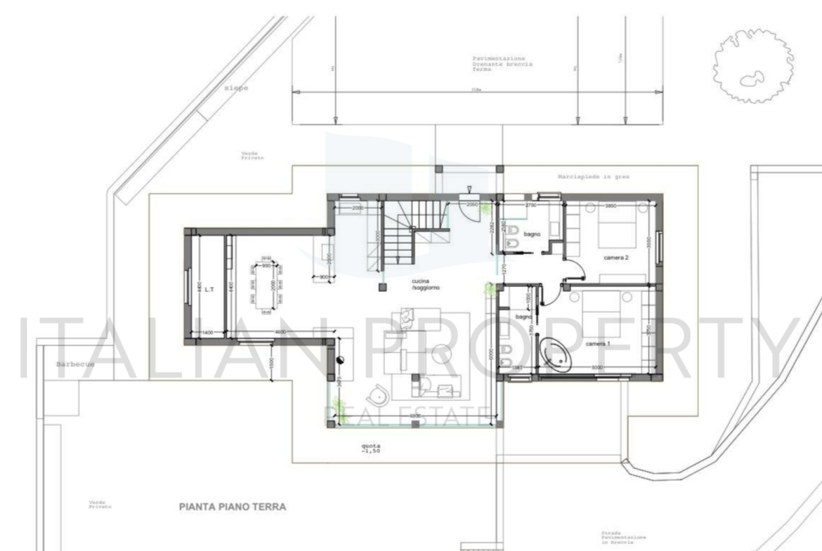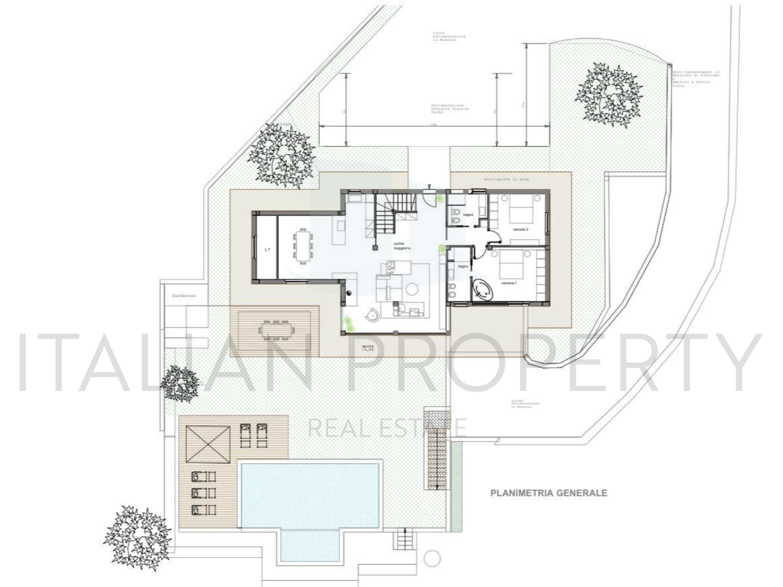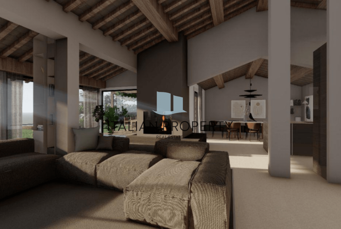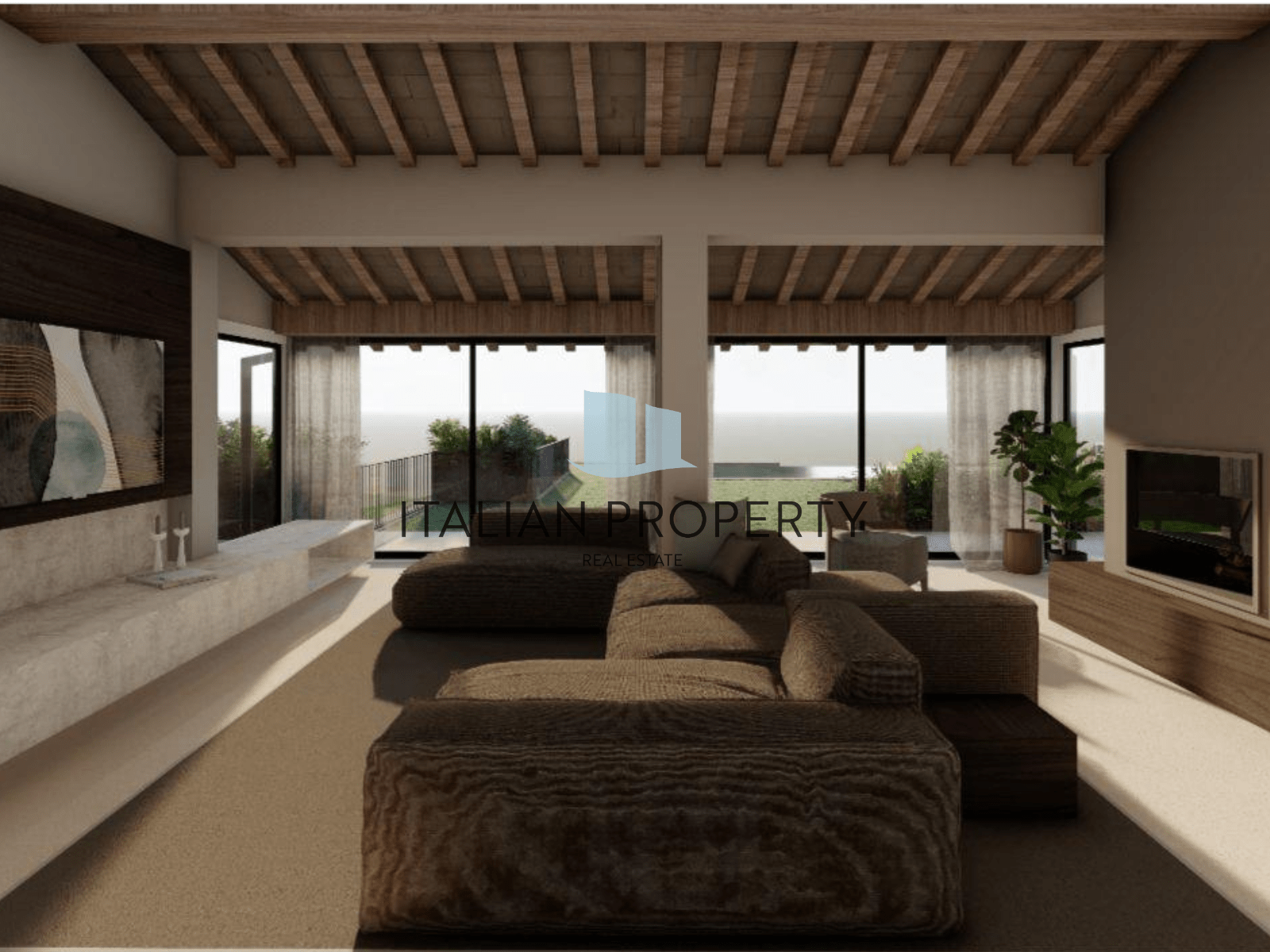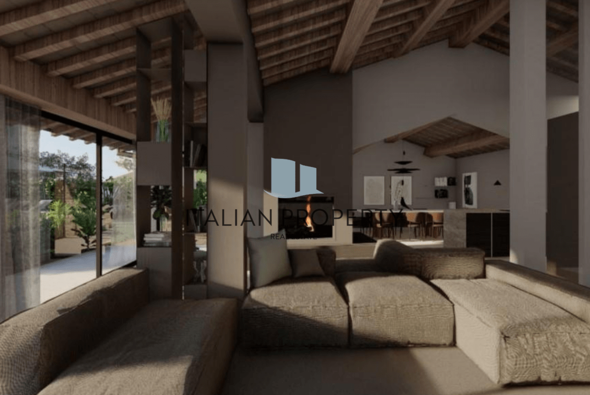 Die Villa befindet sich auf der Semi-Interrato-Etage. Wir finden den unabhängigen Zugang, ein großes Wohnzimmer, ein großes Schlafzimmer mit begehbarem Kleiderschrank, den Spa-Bereich mit beheiztem Innenpool, 2 Badezimmer (eines im Zimmer), die Waschküche und den Abstellraum.