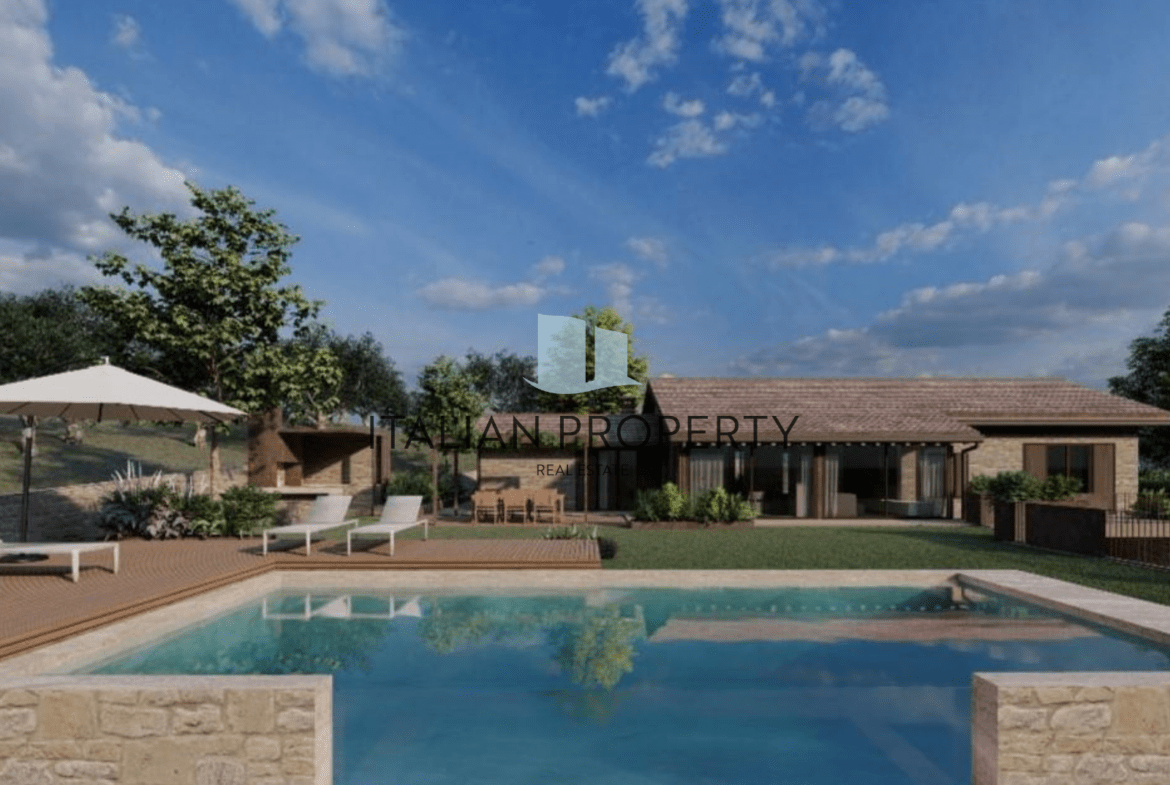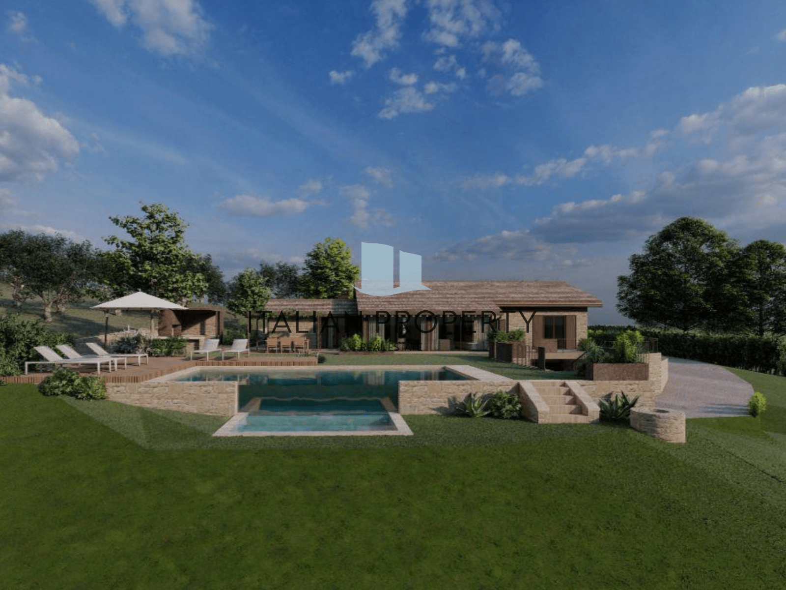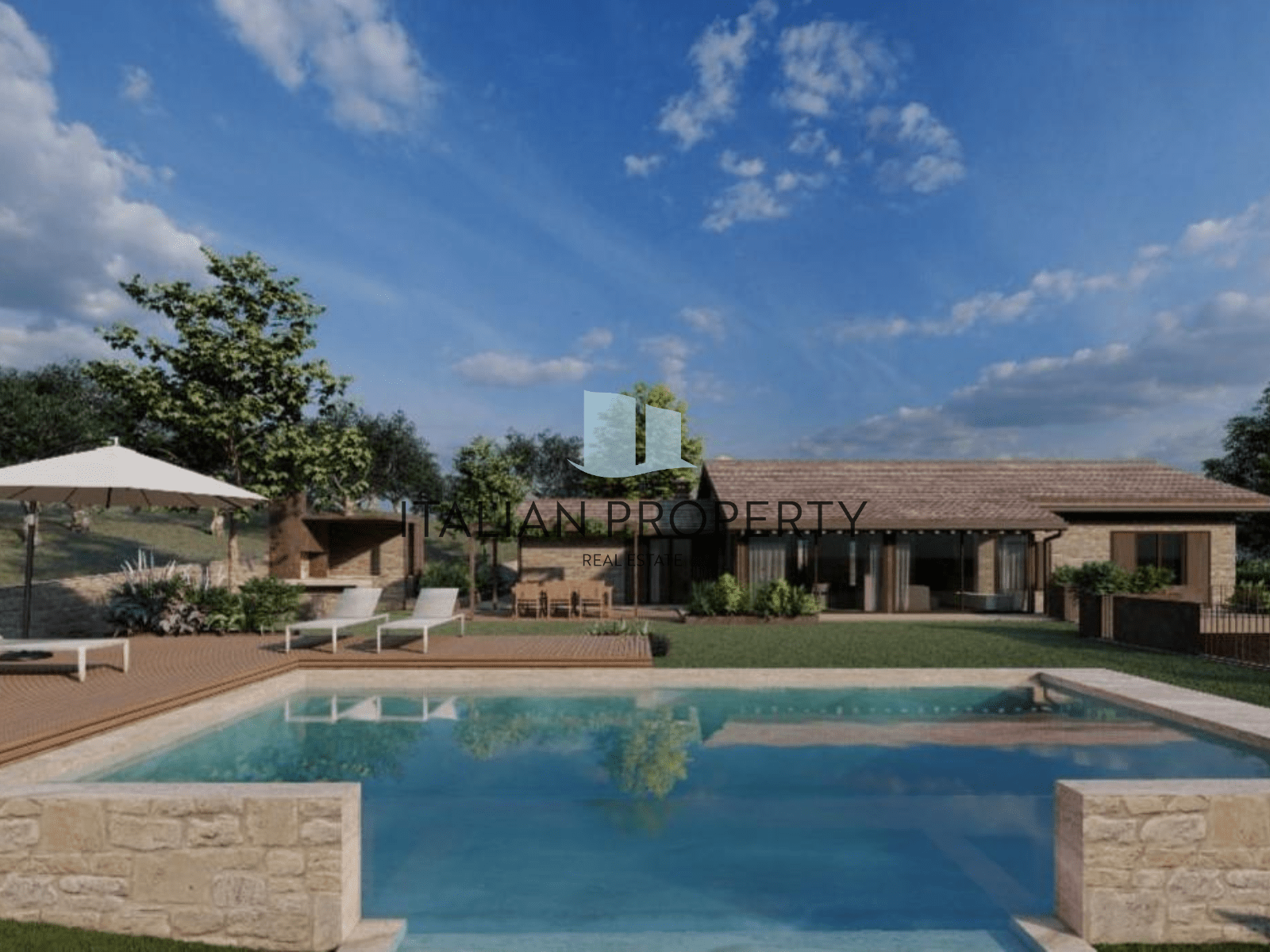 Entdecken Sie Ihre neue Luxusoase! Diese neu gebaute Einzelvilla, eingebettet in die malerische umbrische Landschaft, bietet einen atemberaubenden Blick auf den Trasimeno-See.
