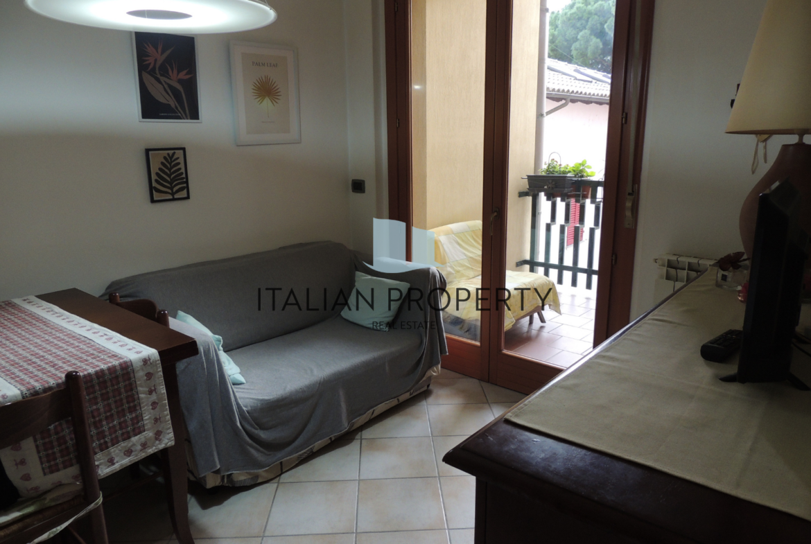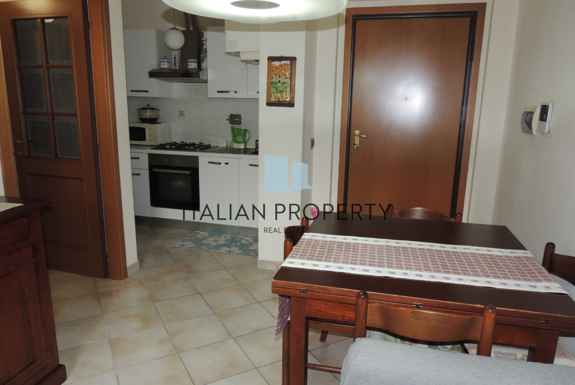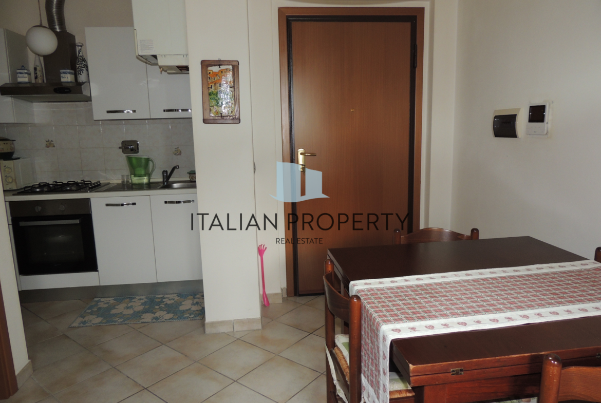 The building, houses an apartment on the second floor, with a surface of about 45 square meters, to which are added 5 square meters of terrace. The interior is well distributed with a large open space that includes living room and kitchen, a practical storage room, a hallway, a bathroom, and a bedroom.