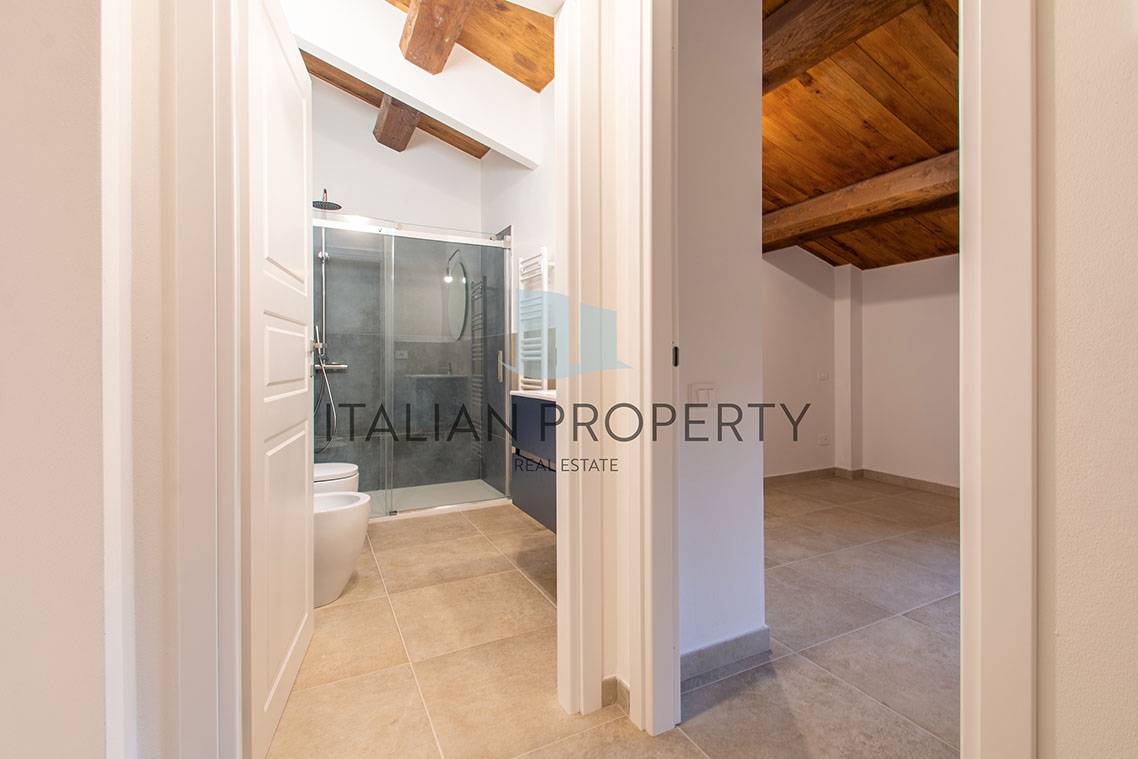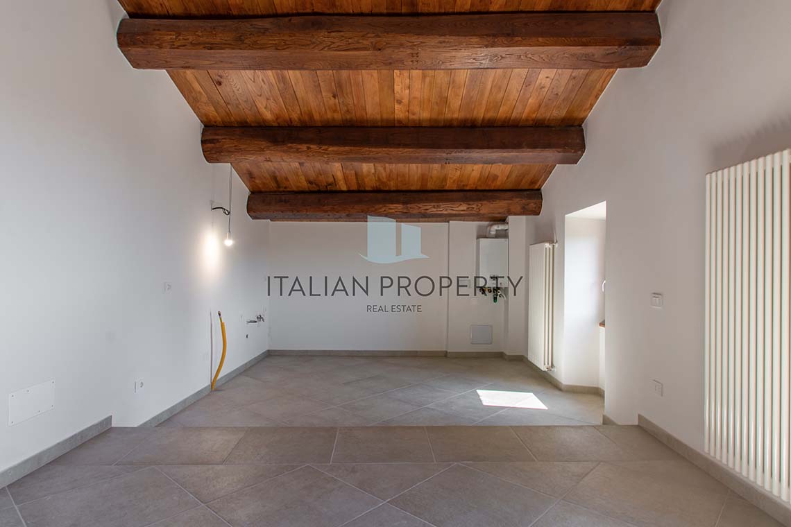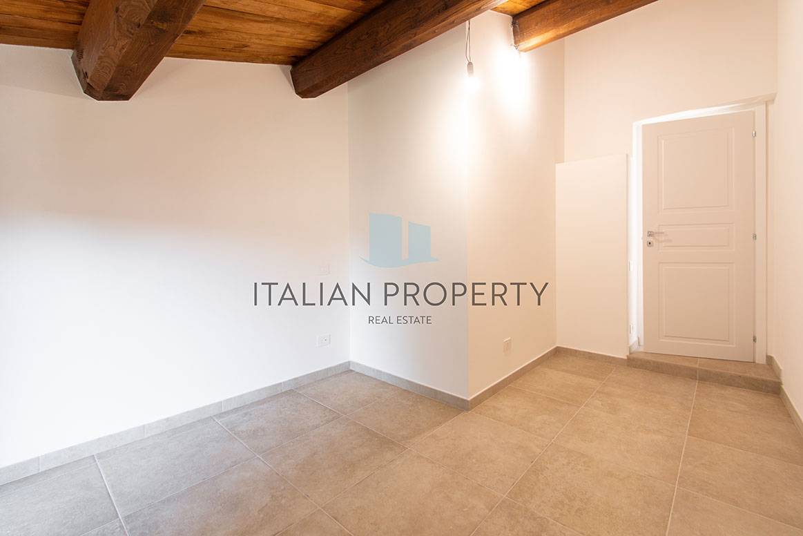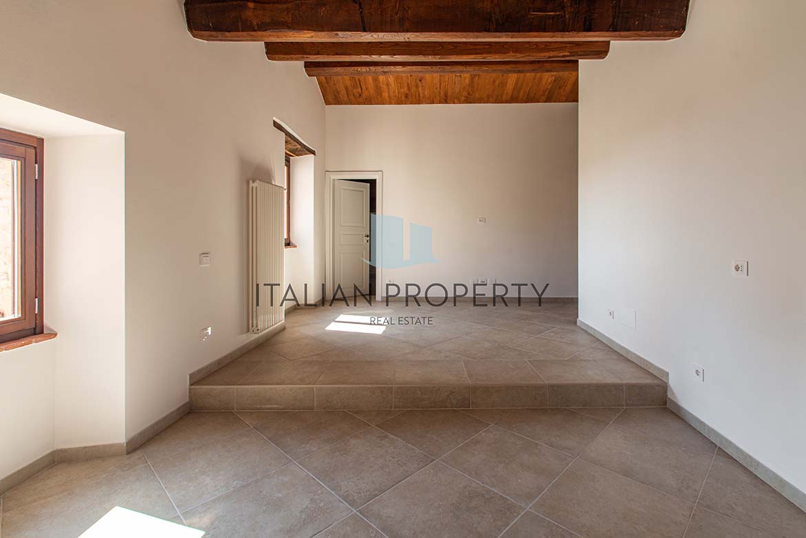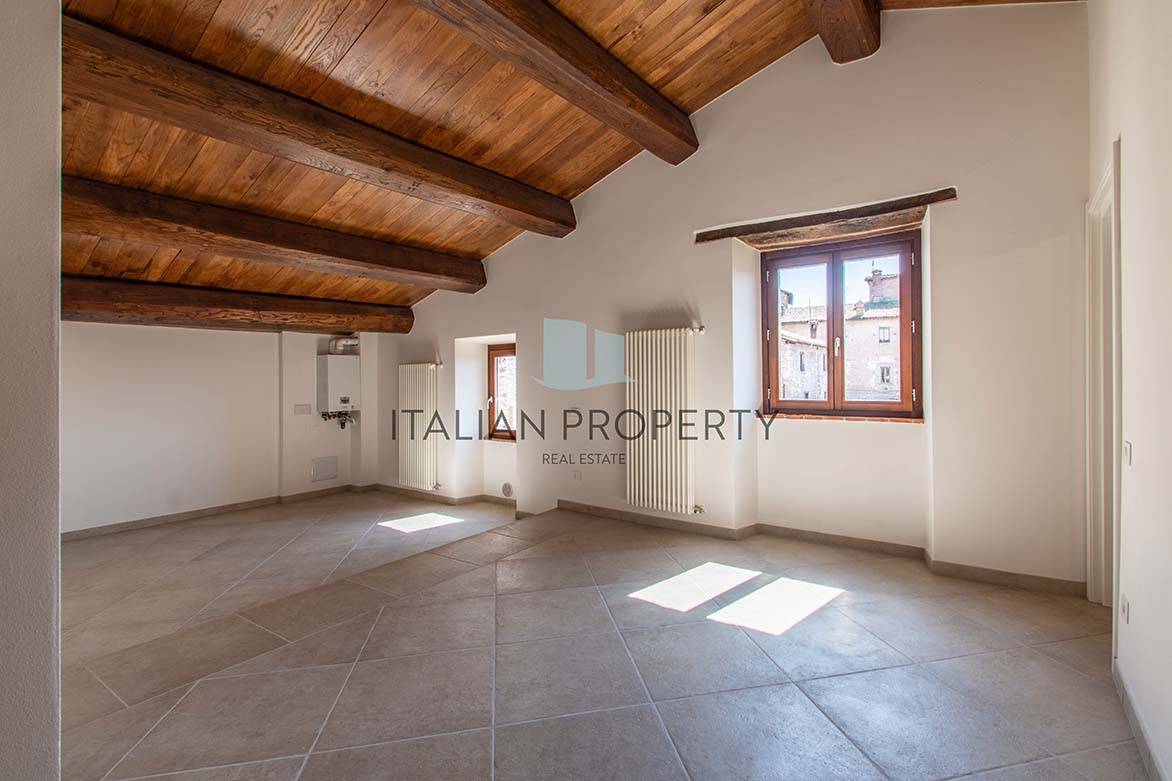 The apartment is on the second and last floor, distributed on one level, renovated in 2024 structurally and internally, with special attention to details and a recovery work respecting the historical heritage of Gubbio, such as exposed beams and stone arches. It consists of: a large living area with open-space kitchen, two double bedrooms and a windowed bathroom. The floor is made of porcelain stoneware. The overlooks are open and bright with panoramic views and on Piazza Quaranta Martiri. The property is completed by a common appurtenant room, used as a storage/storage room.