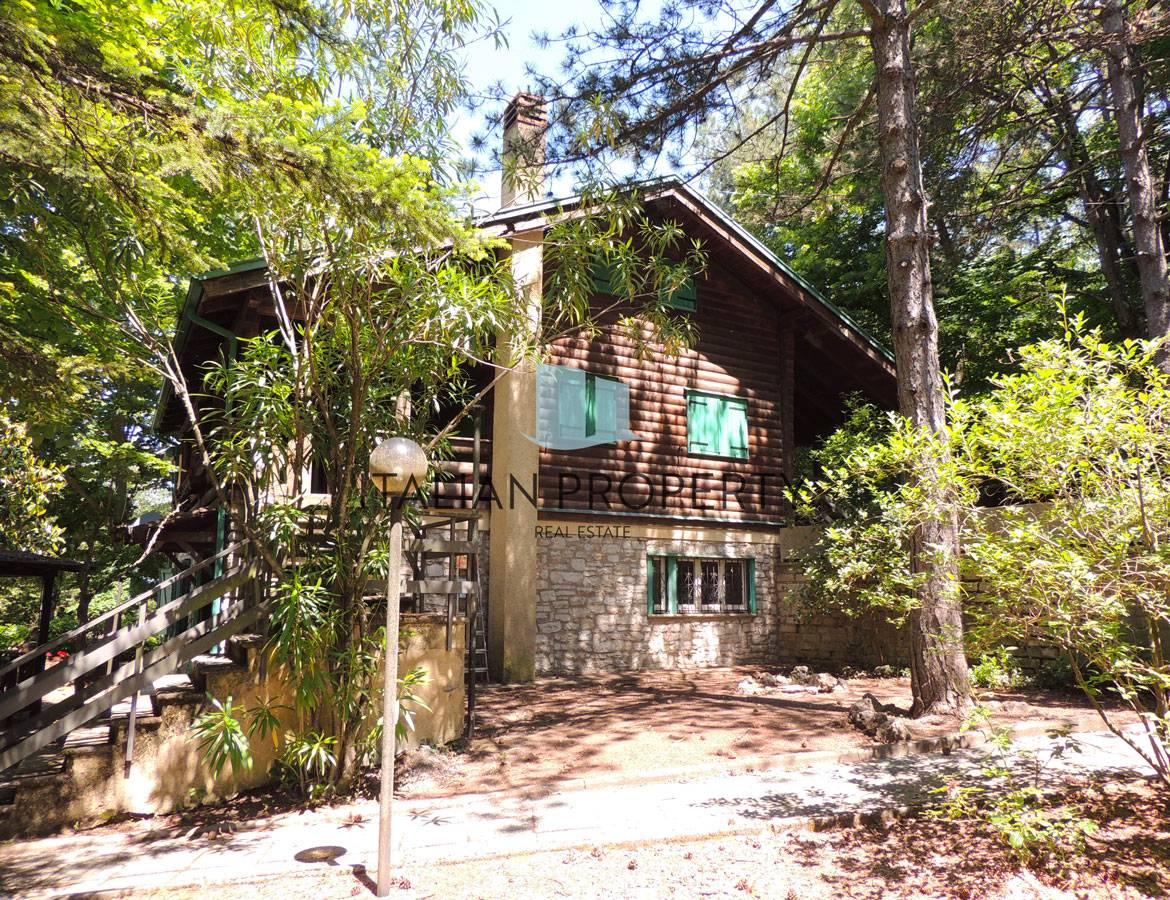 This particular wood and masonry house that makes you think of a mountain hut is located among the trees of the hills surrounding Lake Trasimeno near one of the many historic Umbrian villages, it is surrounded by a 2000 m2 park with a beautiful panoramic view of the valley, the house is on 3 levels for a total of 230 m2; on the ground floor whose flooring is in terracotta, we find a large living room with fireplace and open kitchen, a double bedroom, a bathroom and a laundry room; on the first floor with wooden floor there is a second living room with fireplace, a kitchen with access to a veranda of approximately 27 m2, a double bedroom, a single bedroom with built-in wardrobe, 2 bathrooms, one with a hydromassage tub; on the second floor attic with wooden floor, there are 2 bedrooms, one with wardrobe and bathroom. In addition to the internal connection, the house has 2 separate entrances, the second entrance leads to the first floor via an external staircase with a veranda of approximately 18 m2, this double access can facilitate the creation of 2 separate apartments. Icona di Verificata con community In the park there is a swimming pool which needs to be renovated due to the prolonged absence of the owners, furthermore there is the possibility of acquiring a further 1500 m2 of neighboring land belonging to the same owners.