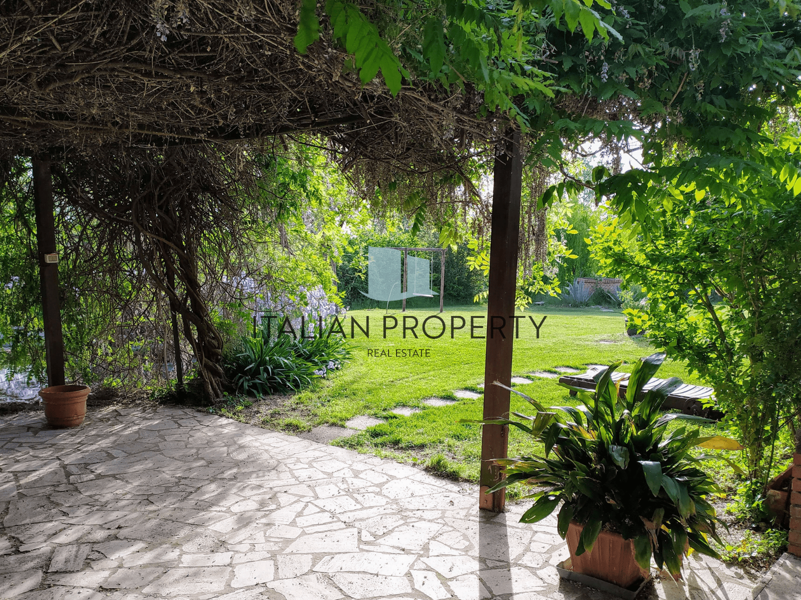 This beautiful villa built in the 1980s with a mixed brick and plaster facade is located in the greenery of the Lake Trasimeno regional park, it is surrounded by approximately 1 hectare of land, the very bright house with large windows is structured on a single floor of 190 m2 , with entrance, large living room with fireplace, dining room, kitchen with adjoining pantry/laundry, 4 bedrooms, 3 bathrooms, one of which is inside a bedroom as well as a covered veranda with fireplace. The floors are parquet in the sleeping area and ceramic in the living area. The surrounding park is a mixture of green lawn of around 5000 m2 and cedar and weeping willow trees, furthermore there is a small olive grove of around 40 plants.