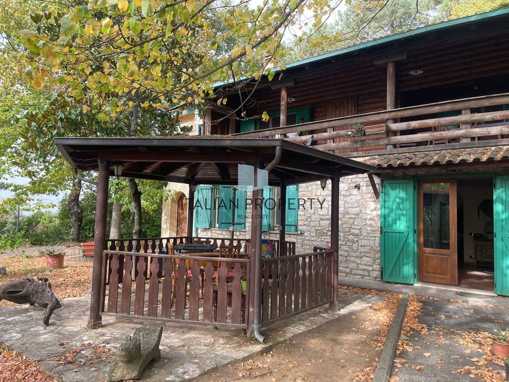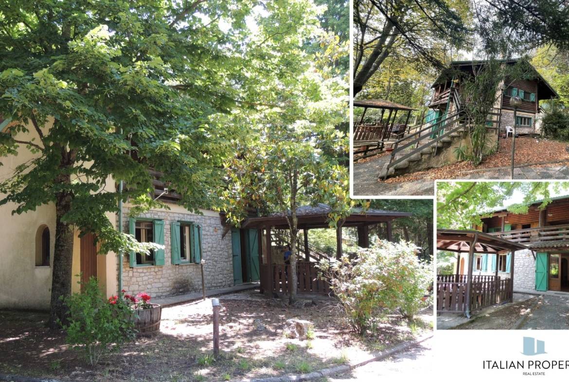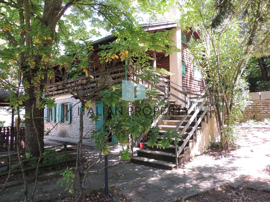 Questa particolare casa in legno e muratura che fa pensare più ad uno chalet di montagna, si trova sulle colline che circondano il Lago Trasimeno vicino ad uno dei tanti caratteristici borghi umbri, è circondata da un ampio parco privato di 2000 mq, la casa di 230 mq è distribuita su 3 livelli, con 3 differenti accessi ai 2 piani superiori.