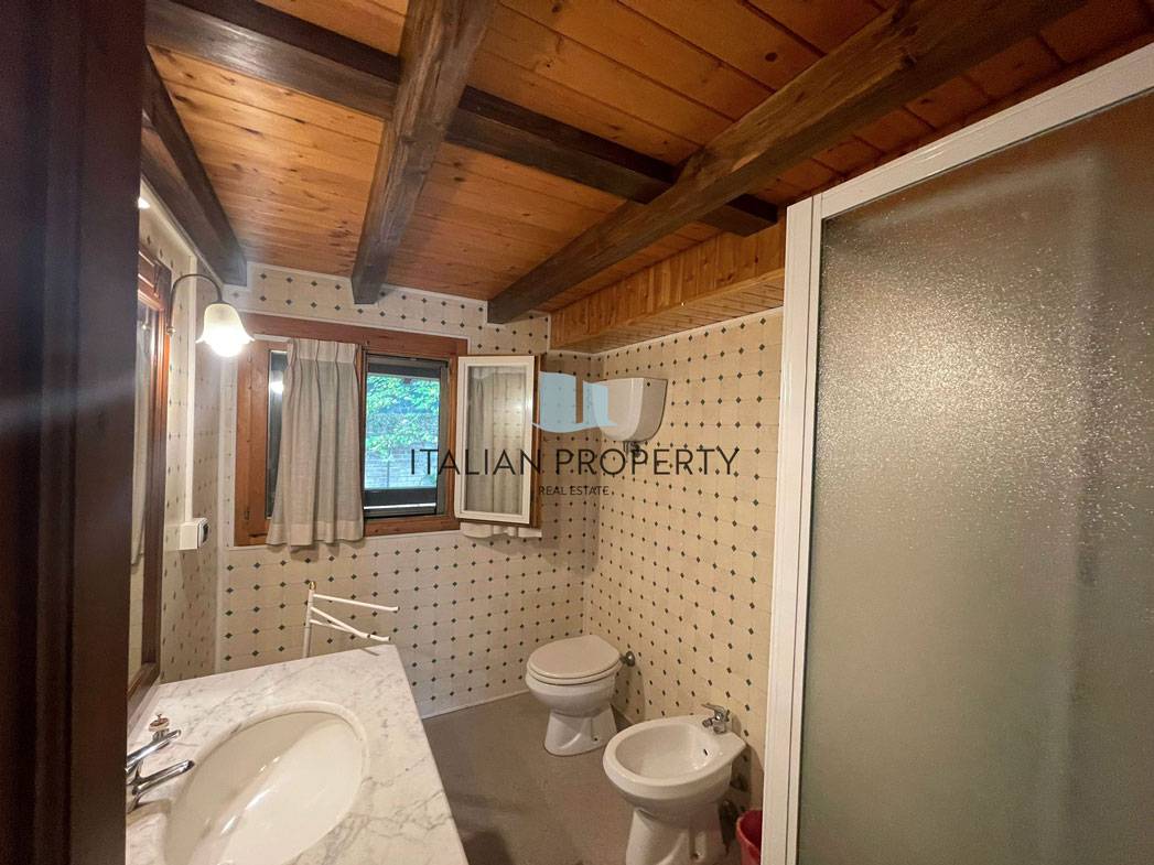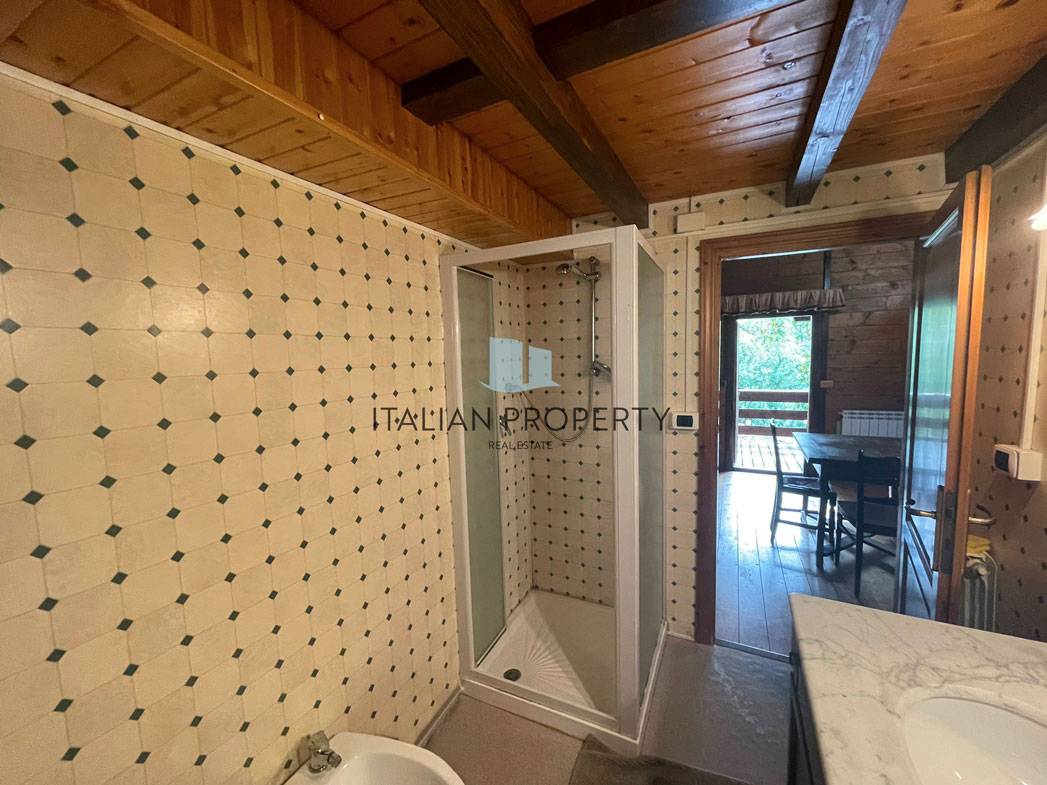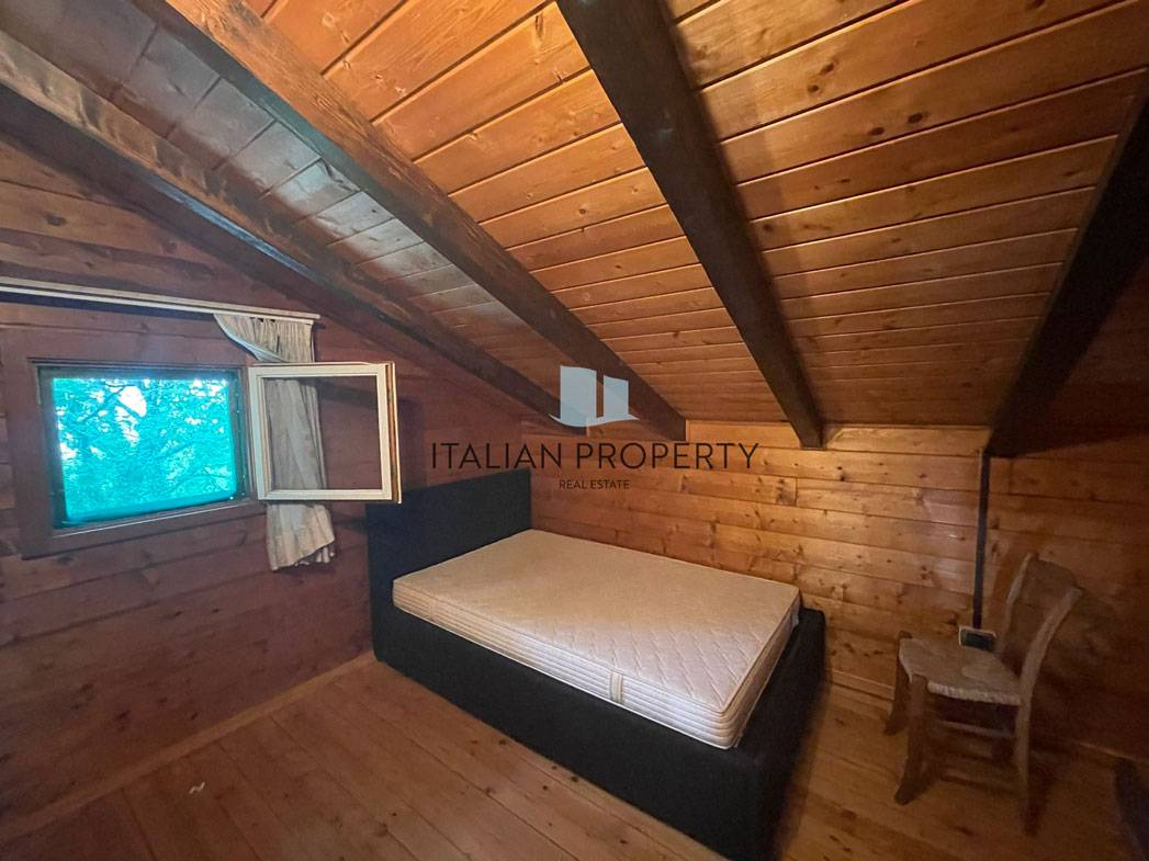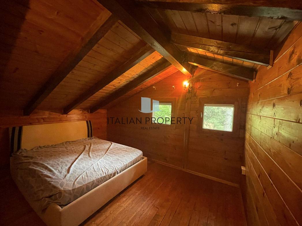 Le finiture sono artigianali, il tetto è in legno come gli infissi, il pavimento al piano terra è in cotto come i gradini che portano al primo piano, nel resto della casa domina il legno come in una tipica baita di montagna.