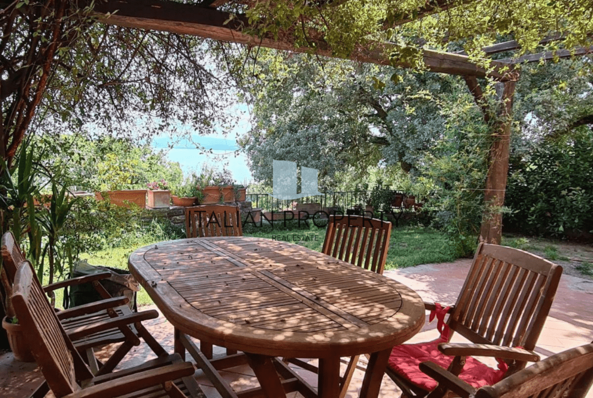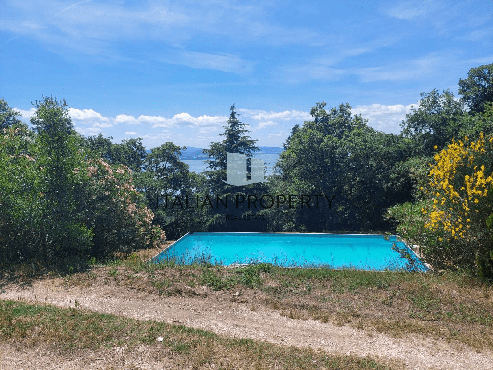 Op een heuvelachtige locatie op slechts 1,5 km van het historische centrum van Passignano sul Trasimeno, met een adembenemend uitzicht op het meer, villa op 3 niveaus van ca. 270 m². onlangs vergroot en gerestaureerd: