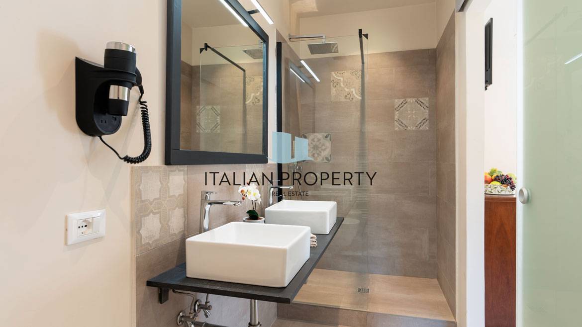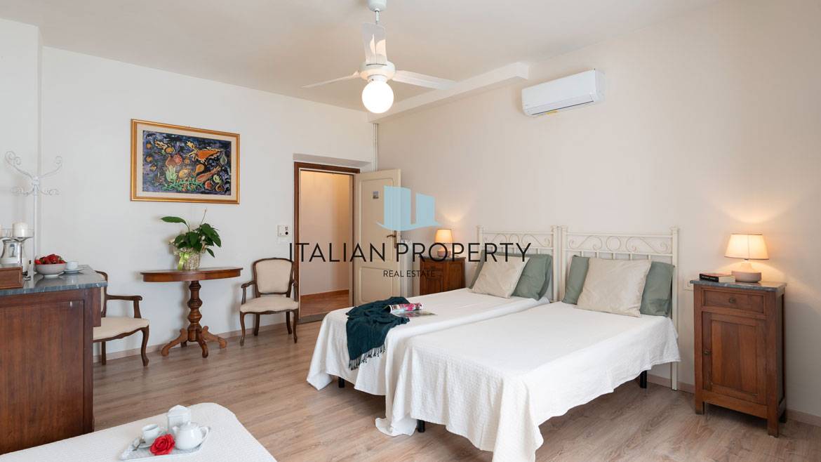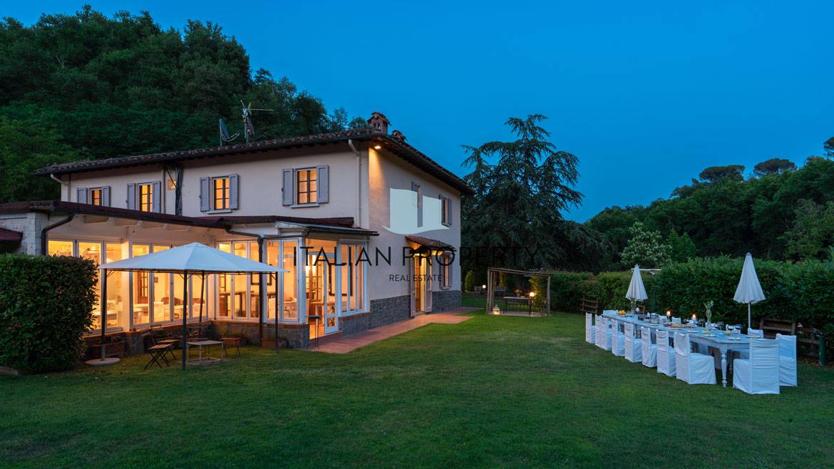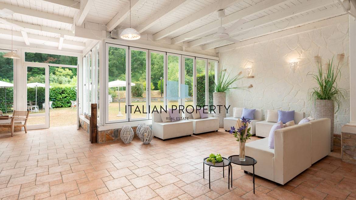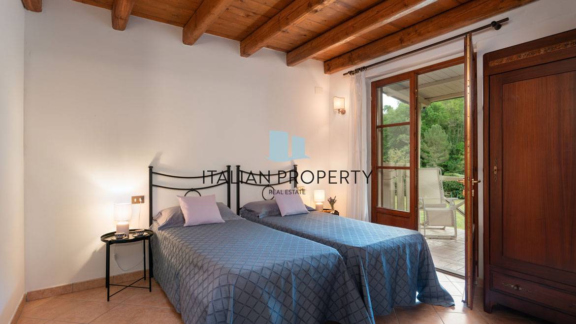 La Villa si sviluppa su 2 livelli ed è composta da un ampia zona giorno con sala da pranzo, un soggiorno con un camino e doppio accesso tramite porte a vetro che offrono una splendida vista sul giardino circostante. Completano il piano una zona reception e un bagno per gli ospiti. Adiacente alla zona reception si trovano le scale che salgono al primo piano con la zona notte composta da tre camere matrimoniali con bagno in camera, una camera matrimoniale e una camera doppia che condividono un bagno.