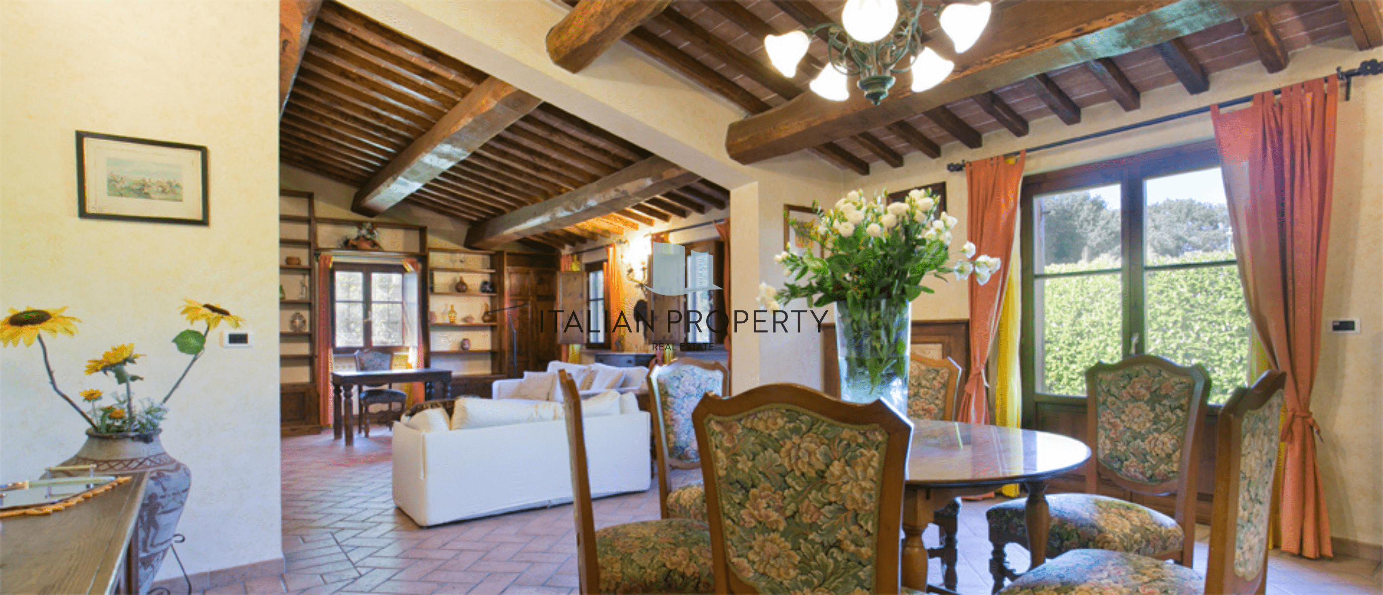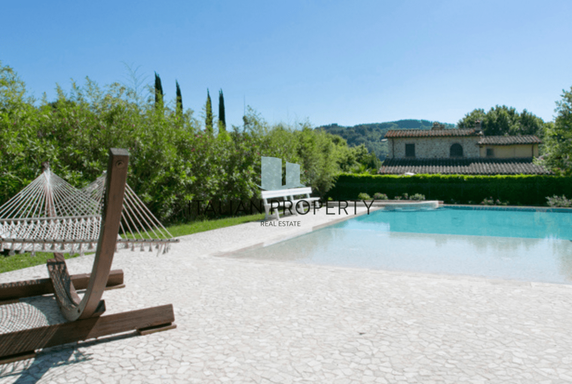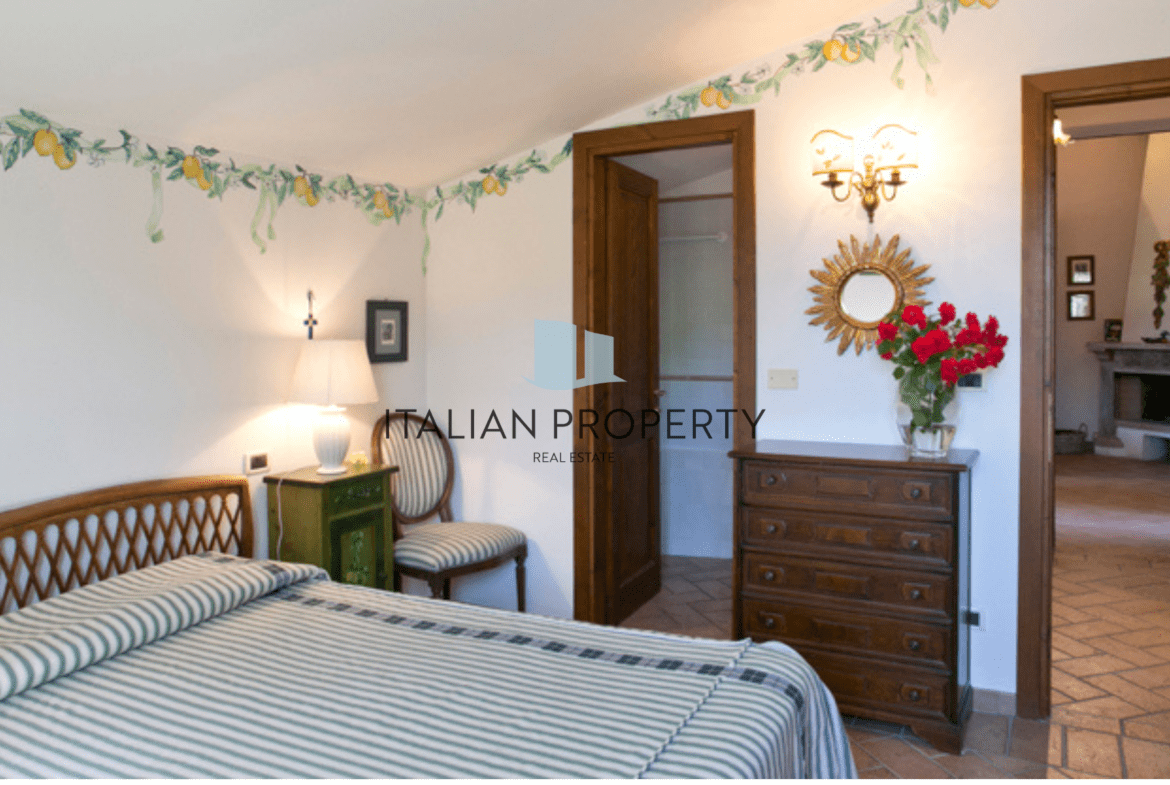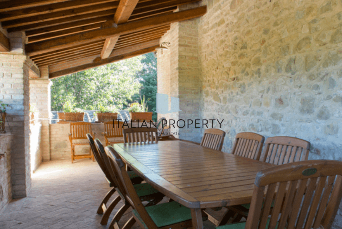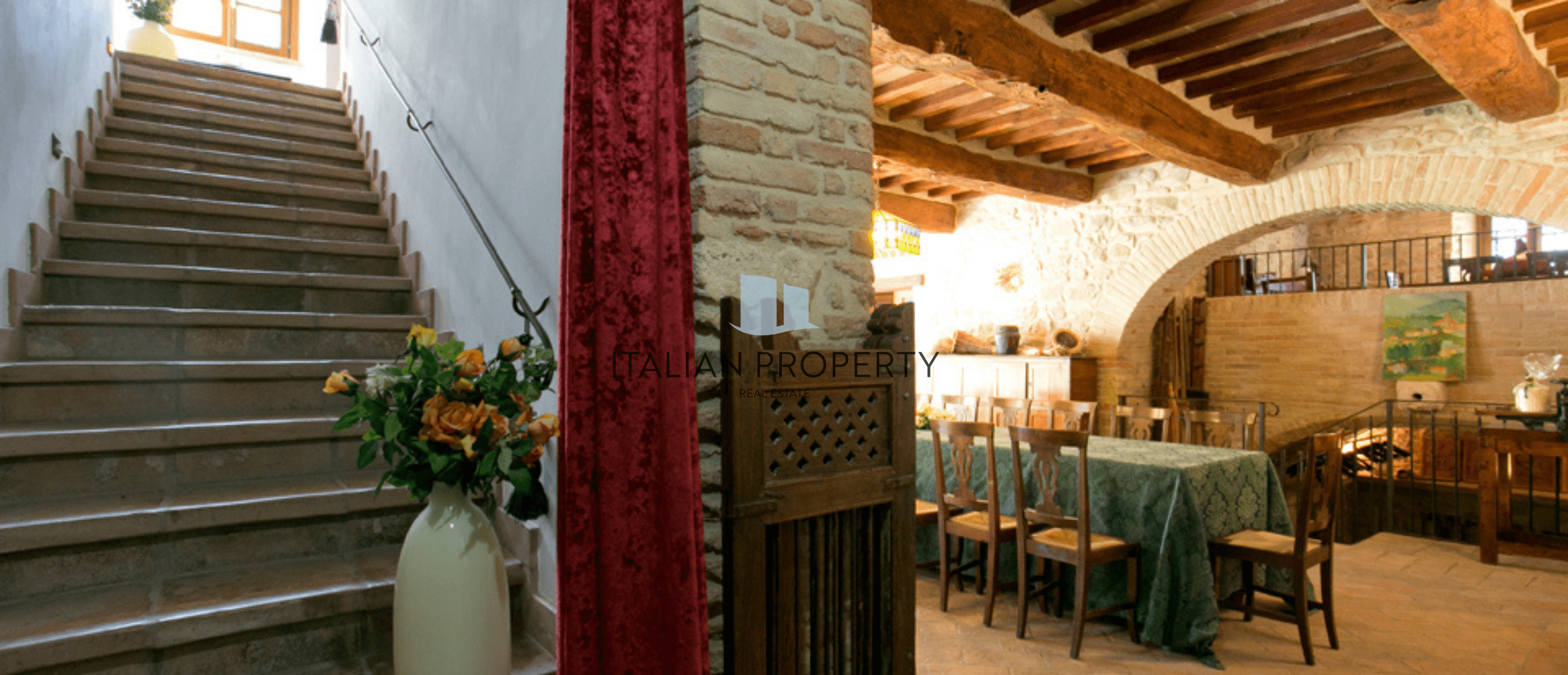 Il compendio immobiliare è stato ristrutturato con finiture di alto livello, è costituito da un corpo centrale (o casa principale)di 572 mq con una torre, dove al piano terra troviamo un grande portico con accesso ad un primo soggiorno con ampie vetrate che permettono l’uscita sul giardino, una cucina, un secondo e grande soggiorno rialzato con un magnifico camino, un piccolo disimpegno, 1 bagno, un forno per la cottura del pane ed i locali tecnici e nel piano ribassato si trova una bellissima cantina; al primo piano troviamo 2 cucine, una zona pranzo, un soggiorno con camino con accesso ad una meravigliosa terrazza coperta che affaccia sul giardino, oltre a 3 bagni, 4 camere, 1 disimpegno, 1 ripostiglio e la zona con soppalco della Torre. La dépendance è collegata alla casa principale, tramite una veranda con ampie vetrate apribili con vista sul giardino, dove inoltre ci sono ulteriori 3 wc, un antibagno, un disimpegno e un magazzino per totali 74 mq; la dépendance di mq. 66 con accesso privato, è composta da una cucina, un soggiorno/pranzo, 1 ripostiglio, 2 disimpegni (zona notte), 2 camere e 2 bagni. Il compendio comprende una casa “ospiti” con 2 appartamenti separati, il primo al piano terra di mq 165 con un portico, è composto da una cucina abitabile con un soggiorno/pranzo, un secondo grande soggiorno, un disimpegno (zona notte), 3 camere, 3 bagni. Il secondo appartamento di 90 mq al quale si accede da una bellissima scala in pietra e mattoni con un piccolo porticato, è composto da una grande cucina abitabile, un soggiorno con camino, un disimpegno (zona notte), 2 camere e 2 bagni. La proprietà comprende un bellissimo parco di 2 ettari che circonda le case, una meravigliosa piscina 8×16 e una zona con impianto fotovoltaico capace di fornire 12 kw di corrente.
