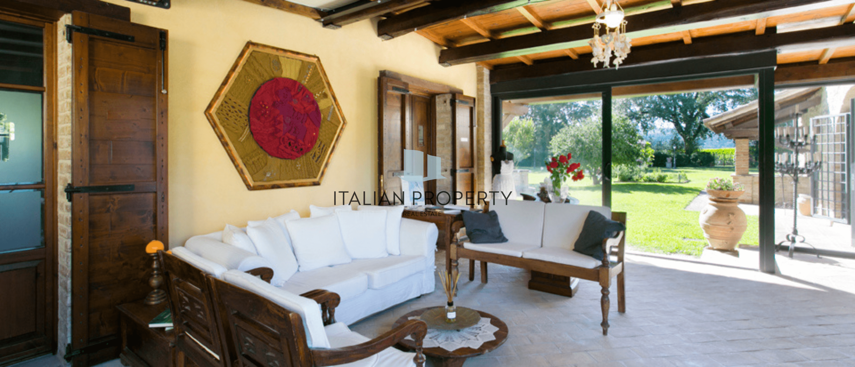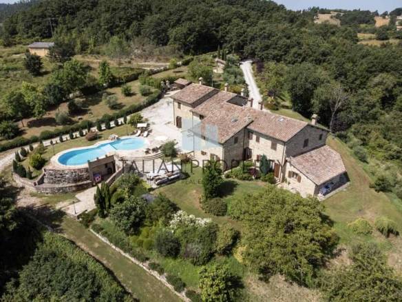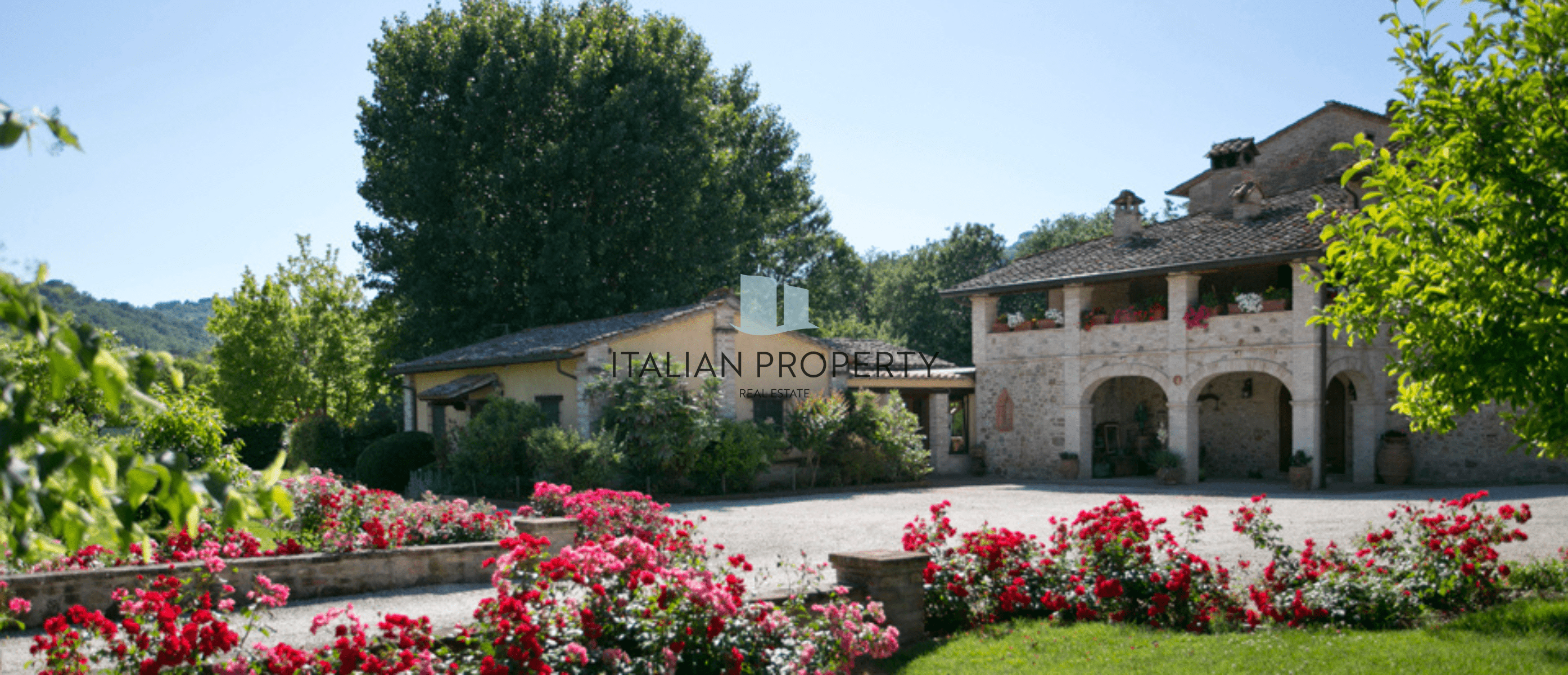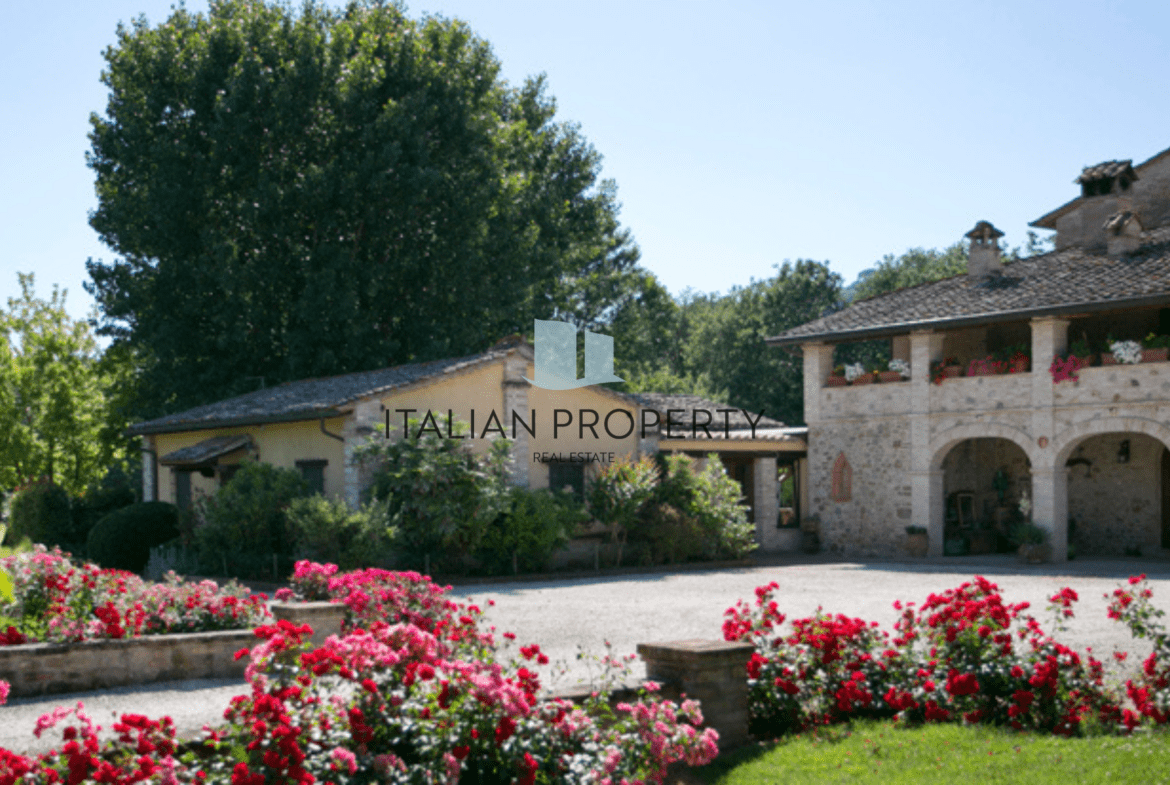 Nel verde della campagna umbra, ad un passo da Perugia, a pochissimi chilometri da Assisi la città di S. Francesco, da Gubbio e dalle zone dei vigneti del Sagrantino di Montefalco, immersa in un parco di 2 ettari, troviamo questa meravigliosa residenza storica.