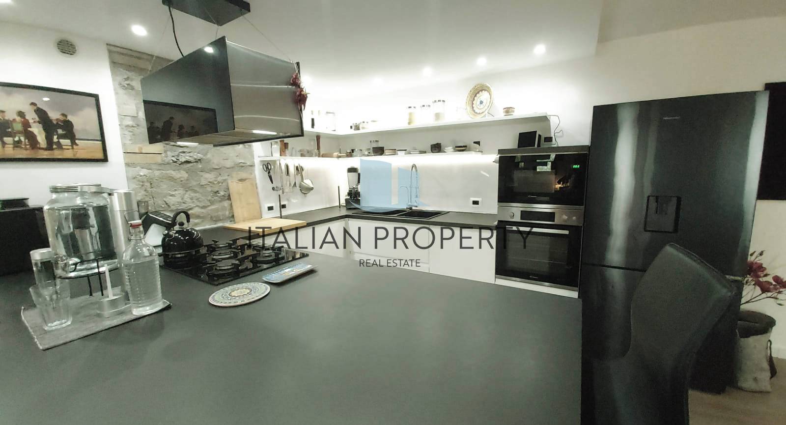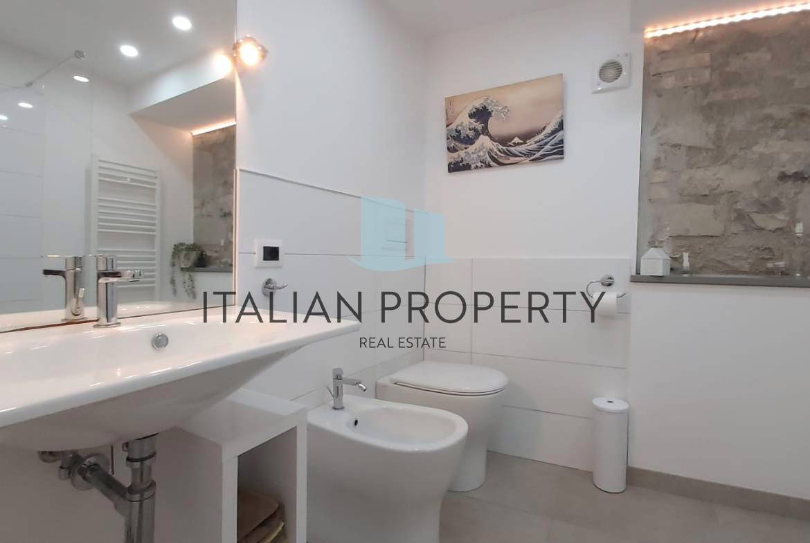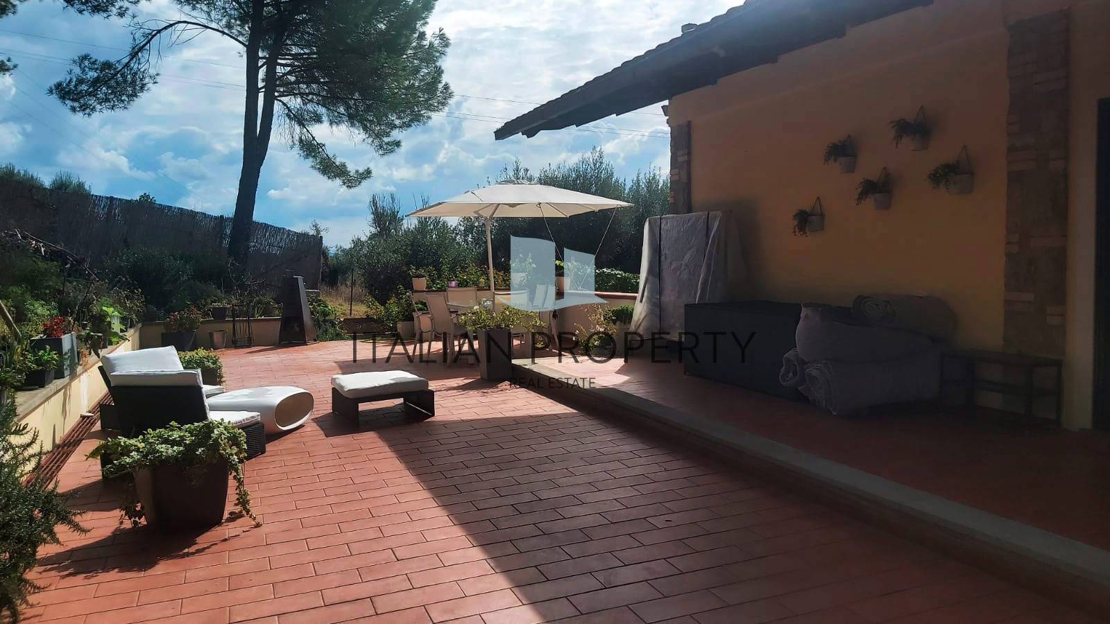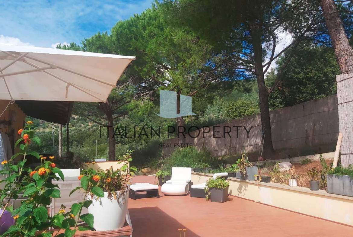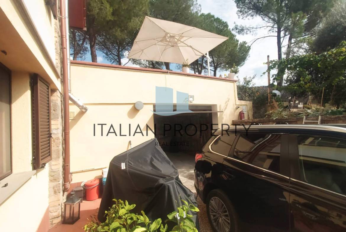 La proprietà comprende un grande giardino di circa 5.500 mq con uliveto (circa 60 piante) e un vialetto alberato che conduce alla residenza, arredata in stile contemporaneo, ambienti luminosi, materiali di finitura sono di prima qualità, tra cui il parquet e serramenti in legno massello con doppi vetri e zanzariere.