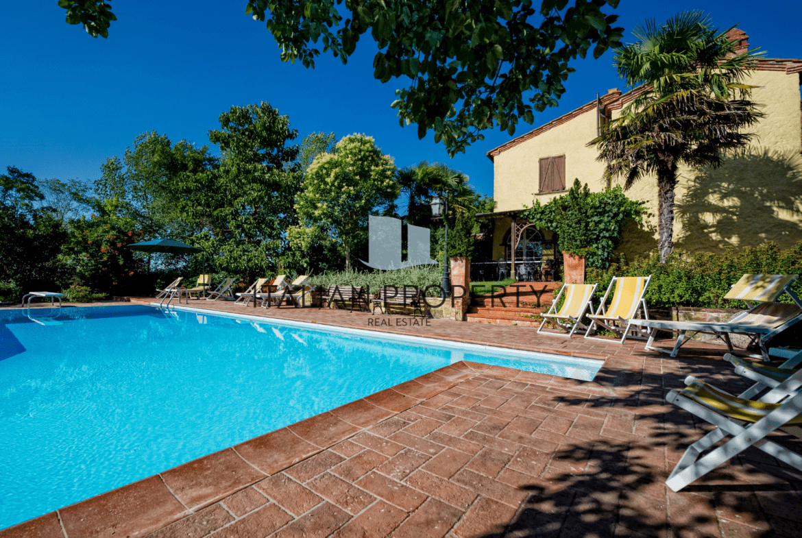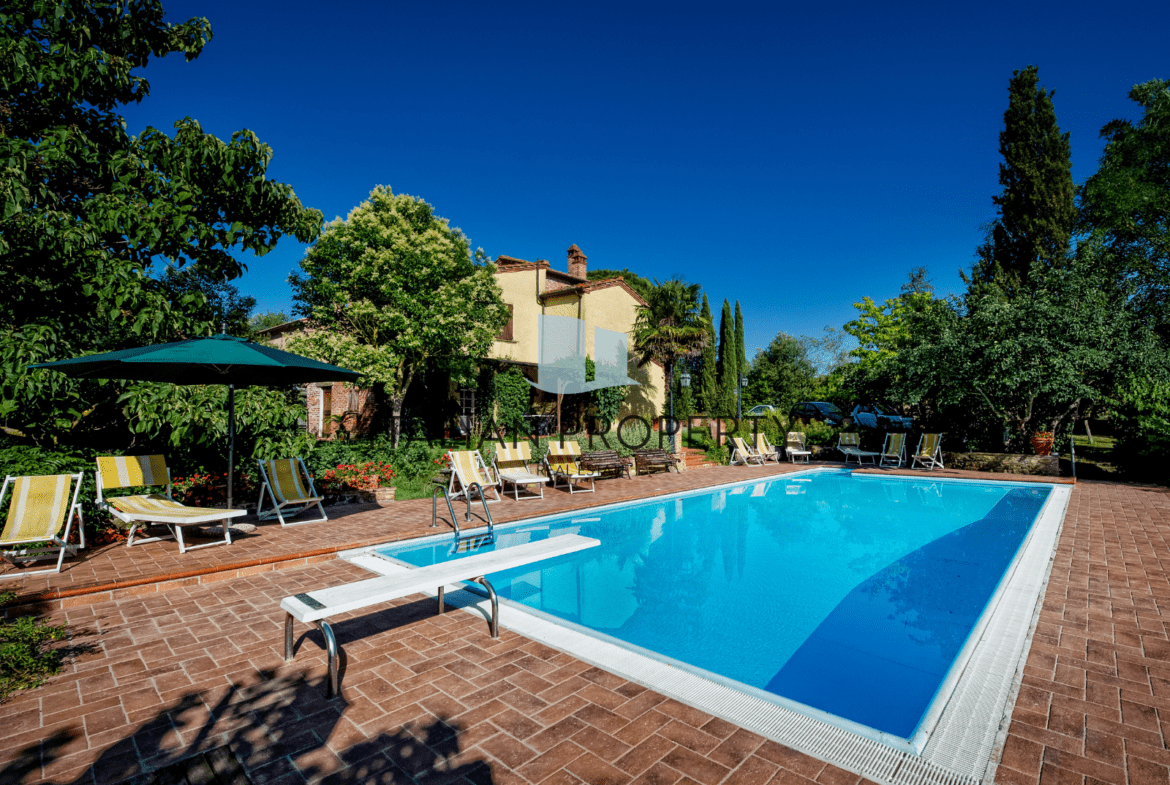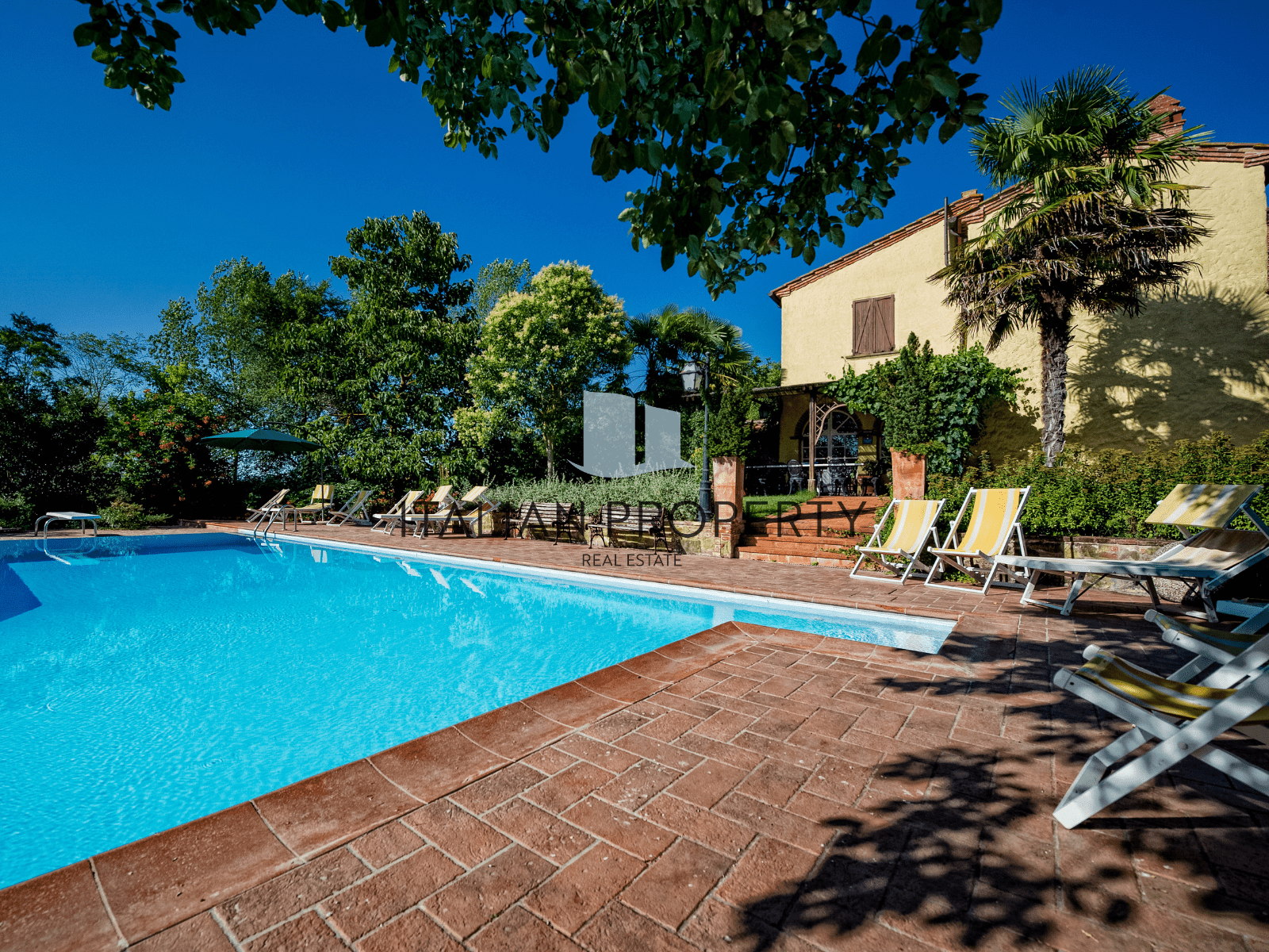 La proprietà comprende una splendida piscina con bordo a sfioro di mt. 6×13 prof. min 1,20 max 3,00, autopulente e una cucina esterna per la zona giardino. La casa è circondata da un parco di circa 35.000 mq con 2 ingressi separati, infatti un secondo ingresso conduce ad una parte del casolare di ulteriori 280 mq da ristrutturare internamente, in quanto tutto il complesso misura in totale 560 mq.