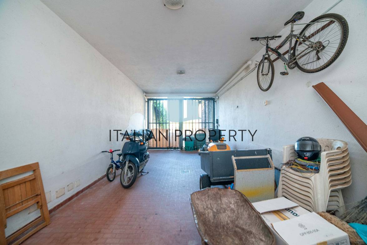 Porte e finestre sono dotate di sportelloni in legno di alta qualità e inferriate di sicurezza, porte blindate, impianto di video citofono, impianto di allarme, oltre all’ampio garage per 2 auto, ci sono posti auto esterni coperti e scoperti per un totale di 900 mq.