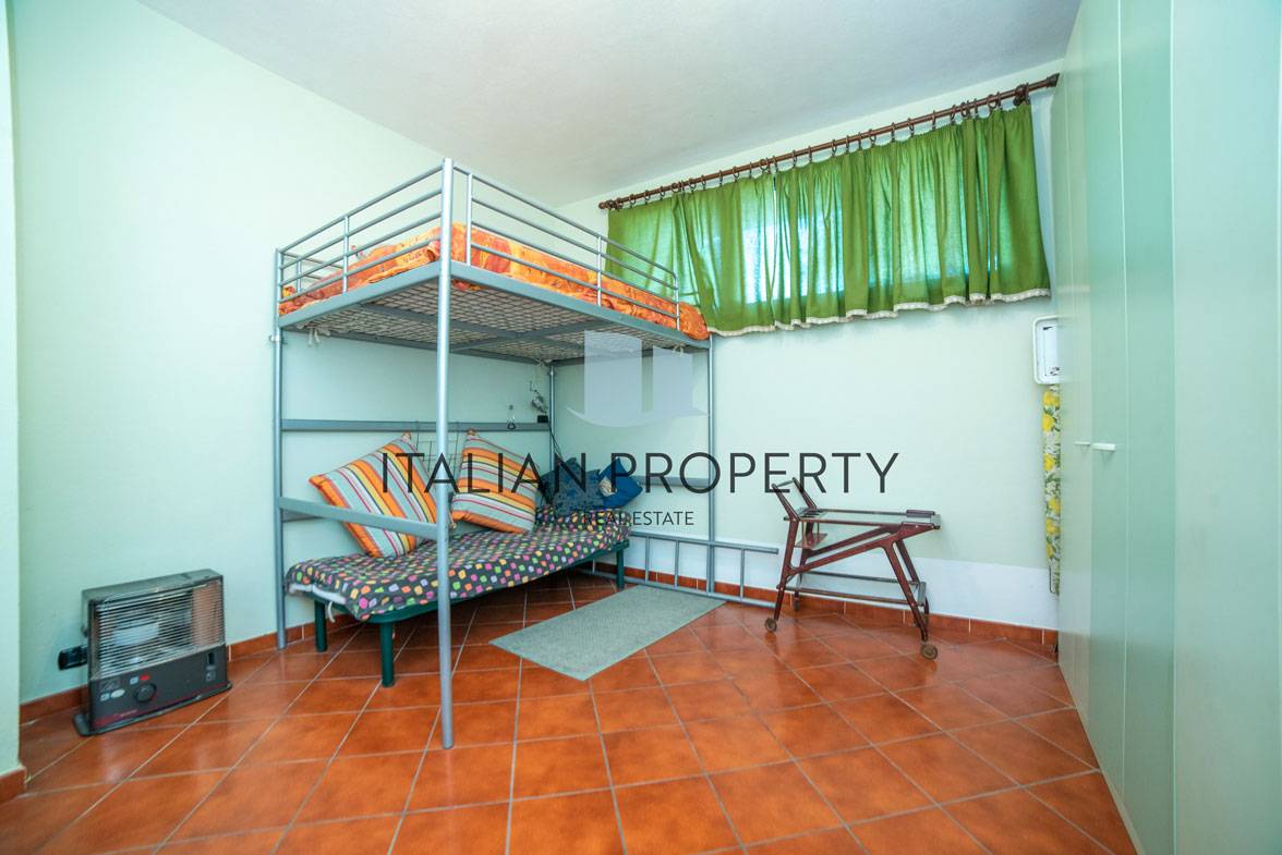 Al Piano seminterrato si accede sia internamente che esternamente dal giardino, troviamo un secondo grande salone con termo-camino, predisposizione per una seconda cucina, bagno, e due camere matrimoniali.